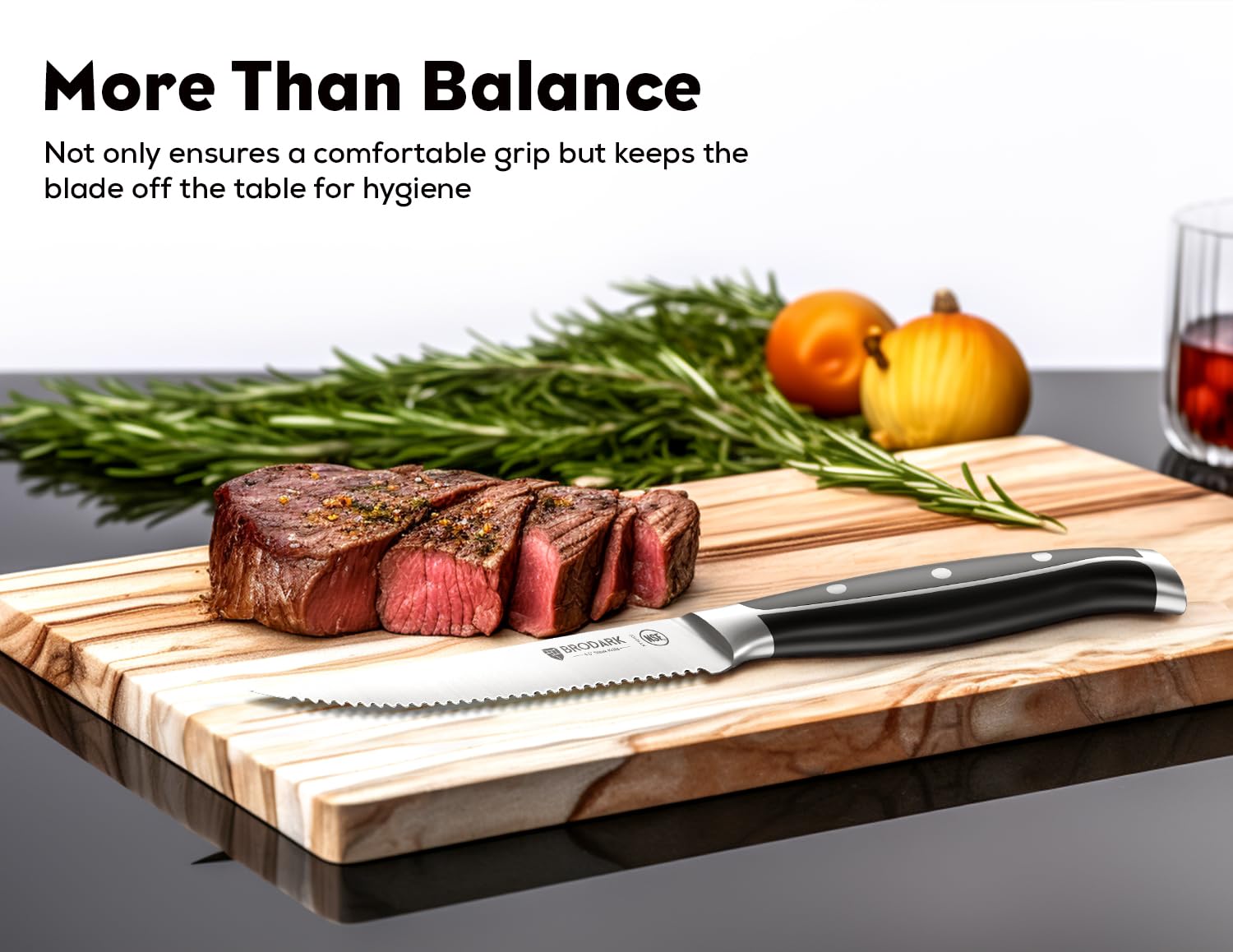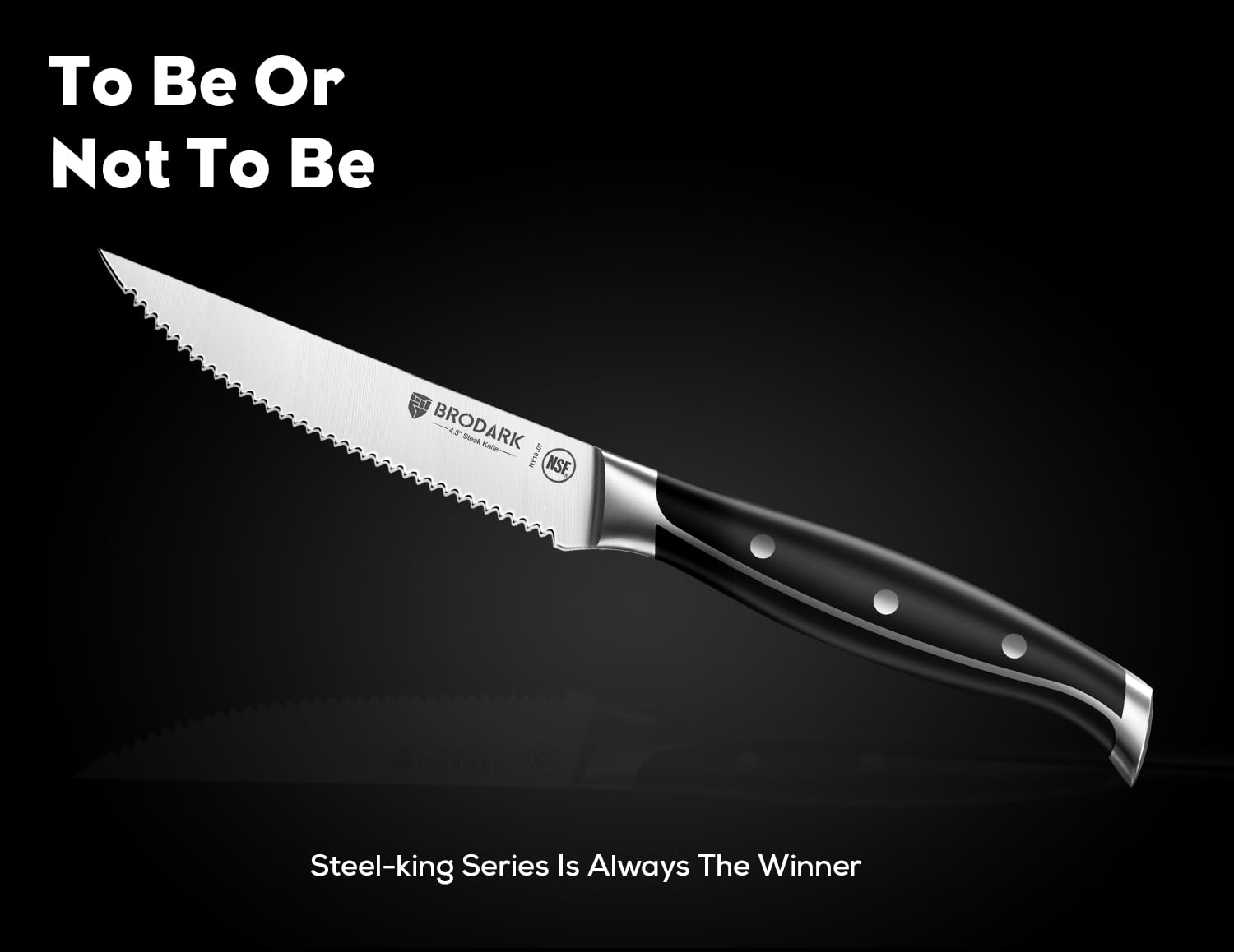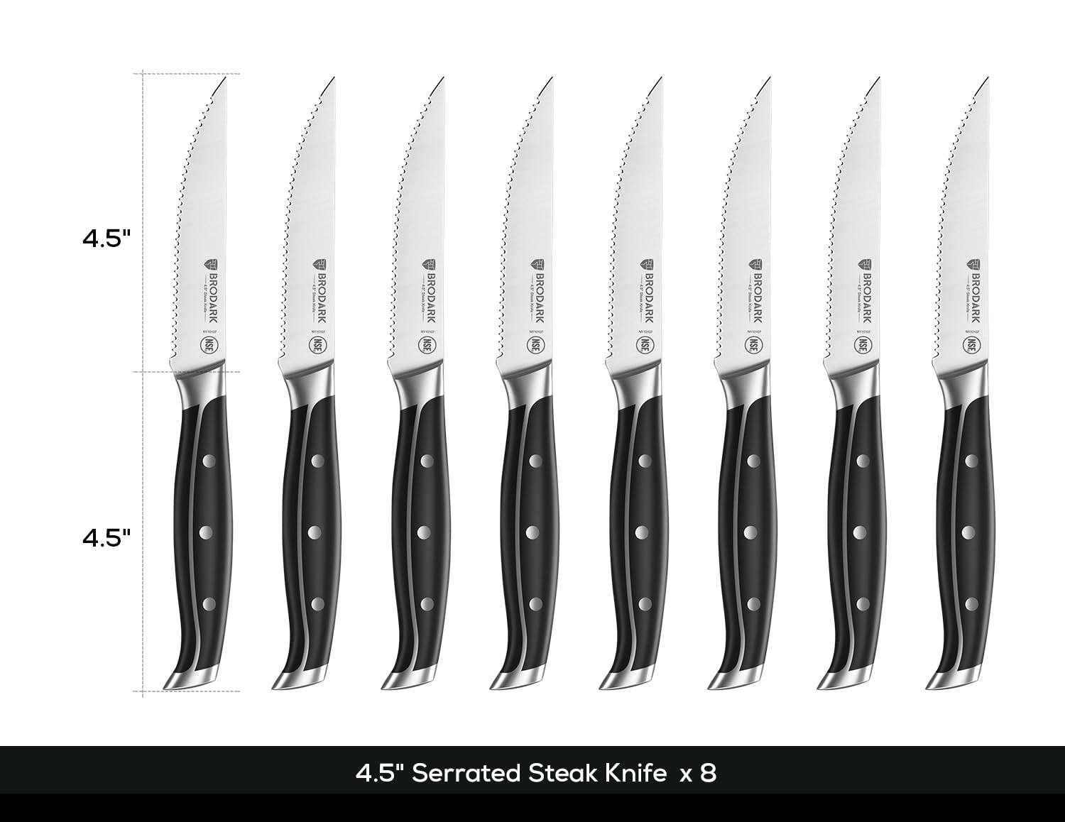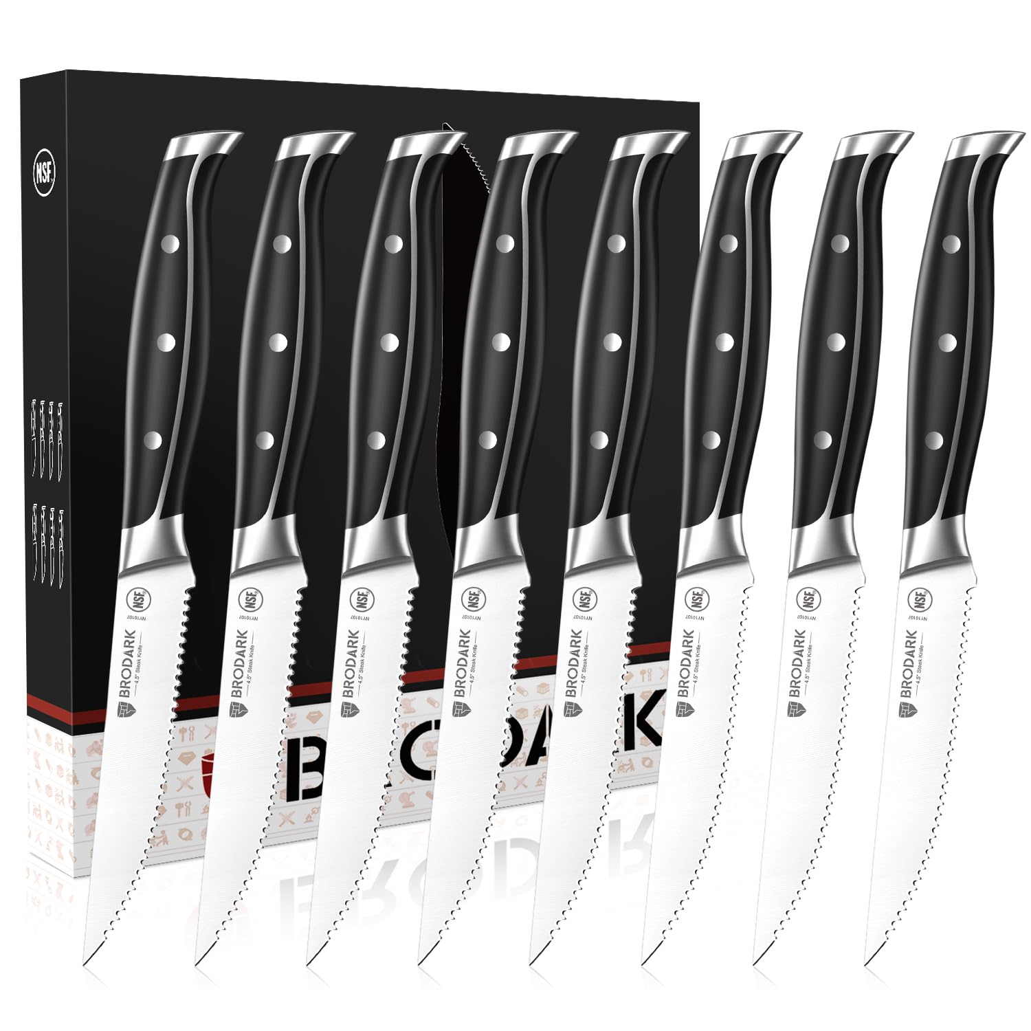 BRODARK Steak Knives Set of 8, Serrated Steak Knives with Full Tang Handle, High Carbon Stainless Steel Steak Knife Set, NSF Certified, Steel-King Series