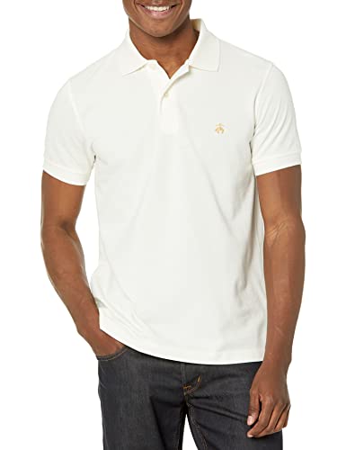 Brooks Brothers Men's Short Sleeve Cotton Pique Stretch Logo Polo Shirt, White, Large