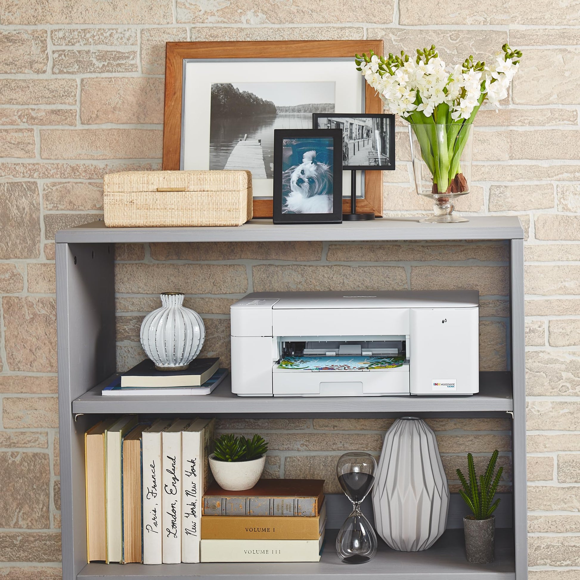 Details: The newly designed Brother MFC-J1215W INKvestment Tank Wireless Multi-Function Color Inkjet Printer is sleek, compact and very affordable. This revolutionary color inkjet printer features reengineered high capacity ink cartridges that provide up to 1-year of uninterrupted printing using only the cartridges included in-box. Print, copy and scan features can be accessed from your mobile device through the Brother Mobile Connect App. Brother Mobile Connect(2) has a user-friendly interface that gives you the freedom to print from virtually anywhere and always have access to the status of your printer’s ink usage. Brother Intelligent Page Gauge is a feature that can be accessed through the App,(2) providing a visual, numerical way to know the amount of ink you’ve used and the amount of ink you have remaining. This wireless printer has multiple flexible connection options, including a built-in wireless interface for sharing with multiple users on your network, Wi-Fi Direct® or connect locally to a single computer via a USB interface. The printer is easy-to-use, features a clean, modern design, offers quick setup and convenient optional printing via AirPrint® and/or Email Print. Works with Alexa; add voice control by combining with an Alexa device. When you need a reliable color inkjet printer at an affordable price to keep pace with your home or home office document needs, Brother INKvestment Tank MFC-J1215W is the printer for you. Includes a 2-year limited warranty with free online, live chat or phone support for the life of your printer. Disclaimers (1) Based on average monthly print volumes of approximately 80 pages at 60% black pages/40% color pages in accordance with ISO/IEC 24711 using 4 cartridges provided in-box. For additional page yield information, see manufacturer’s site. (2) Requires connection to a wireless network. Brother Mobile Connect free app download is not available in all countries. AirPrint is a registered trademark of Apple Inc. Wi-Fi Direct is a registered trademark of Wi-Fi Alliance®. Images are for illustrative purposes only. Specifications subject to change.