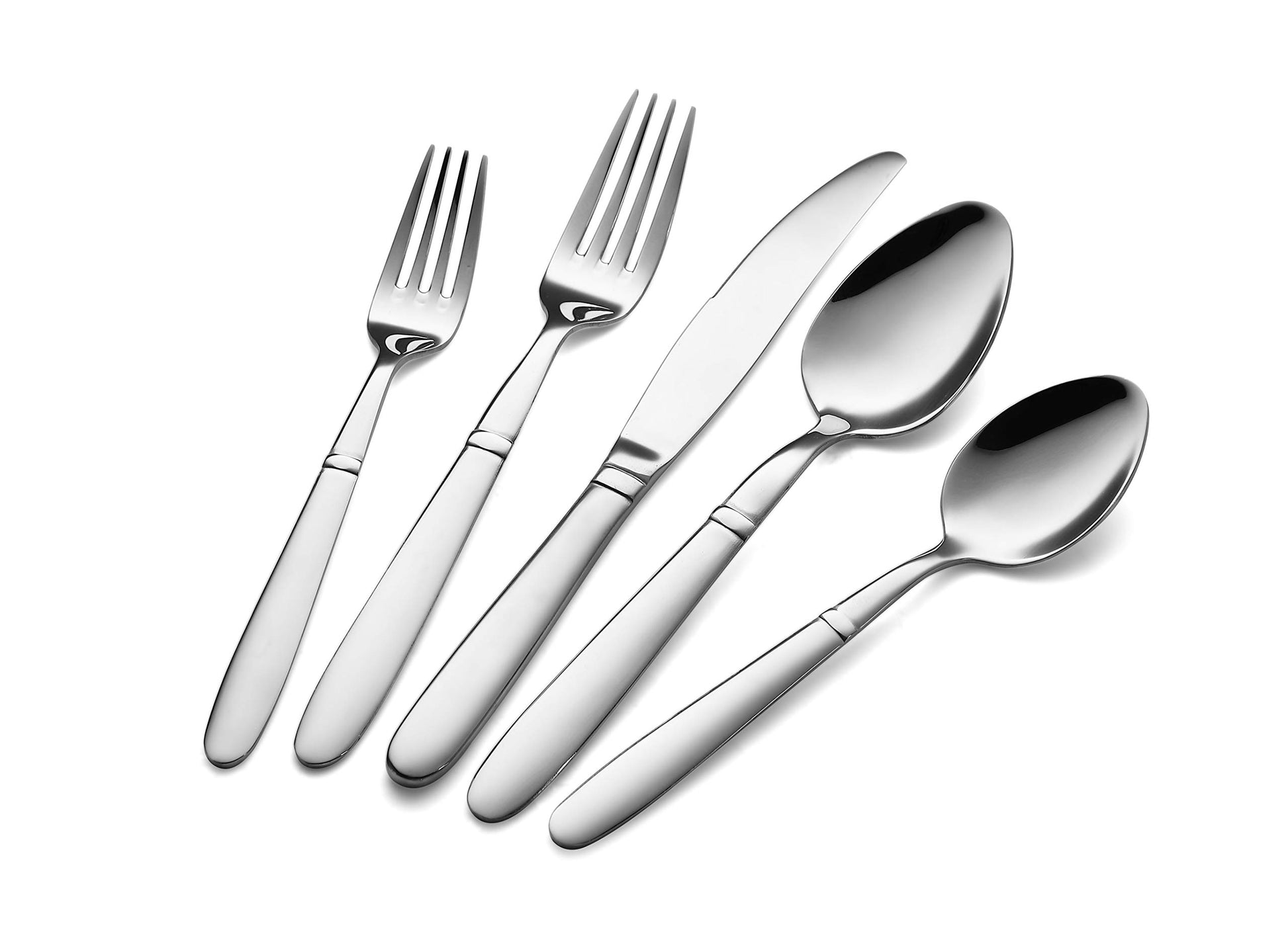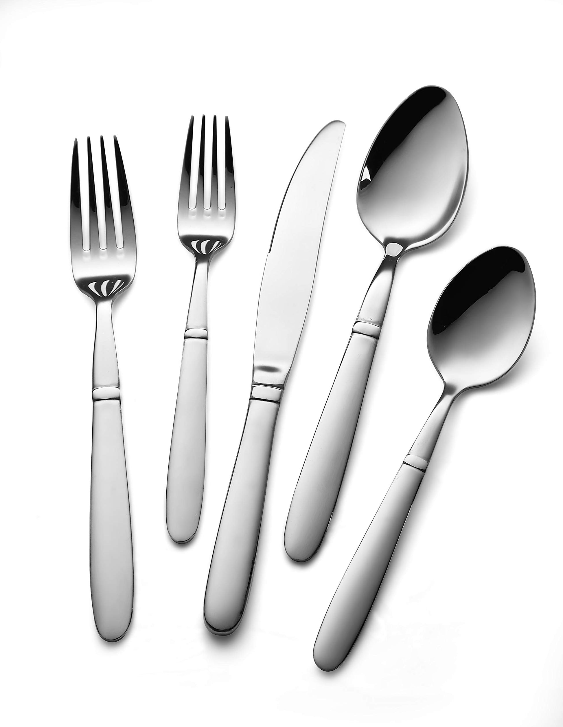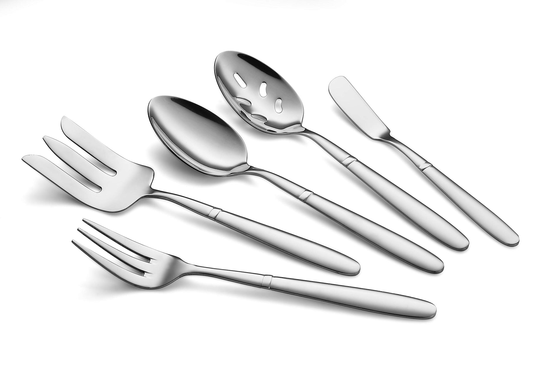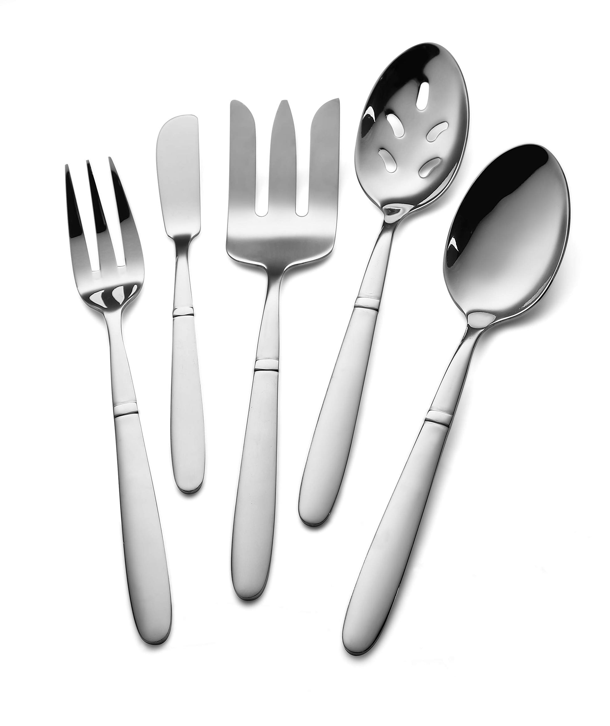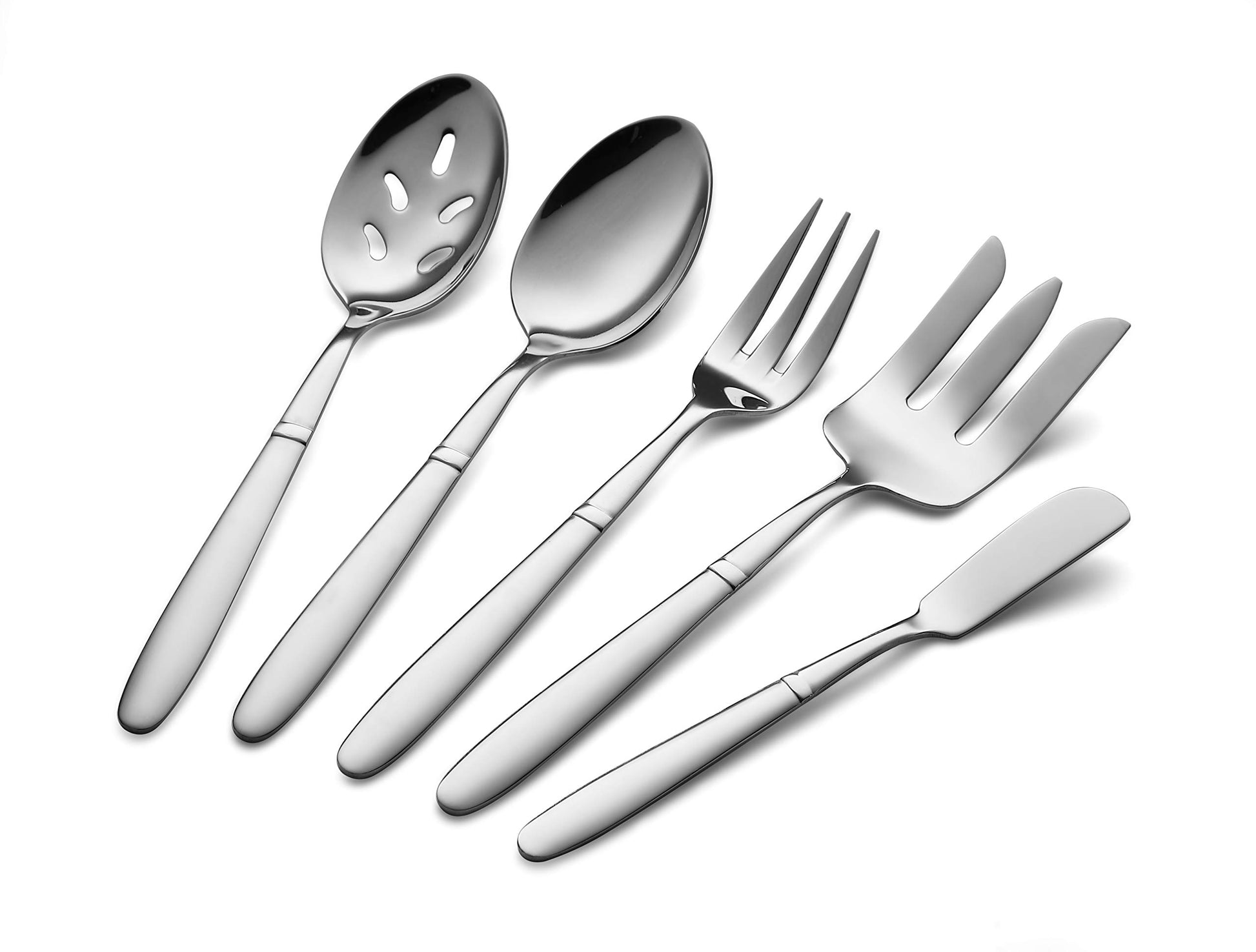 - 8 Place settings include; 8 Dinner Forks, 8 Teaspoons, 8 Knives, 8 Salad Forks and 8 Tablespoons; 5 Serving Pieces