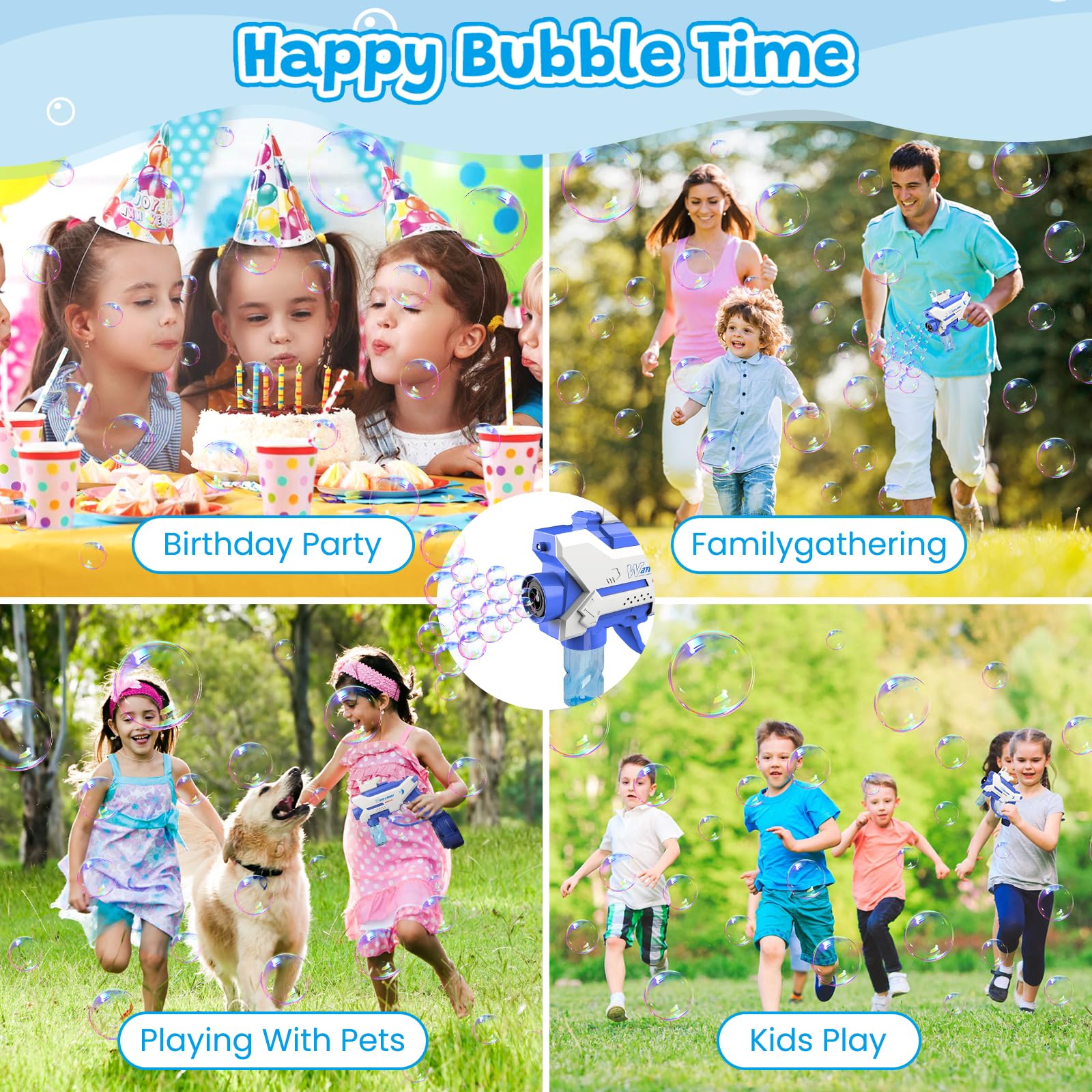 - [Safe & Good Quality]] The solution meets all safety tests and is non-toxic, making it perfectly safe for kids' skin; The bubble machine is made of durable ABS that withstood toddlers's dropping, also has 360 leak-proof to prevent liquid from leaking into hands; A great toy to bring entertained while keeping them safe.