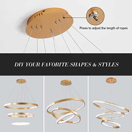Buccleuch Dining Room Light Fixtures Over Table Gold Modern Chandelier Lighting LED 3-Ring for Living Room Kitchen Island Adjustable Cords 75W 6000K Dimmable