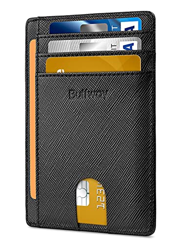Buffway Slim Minimalist Front Pocket RFID Blocking Leather Wallets for Men Women - Cross Black