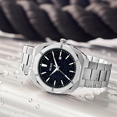 BUREI Fashion Quartz Watch for Men Watch Analog Date Watch with Stainless Steel Band Waterproof Classic Watches for Men