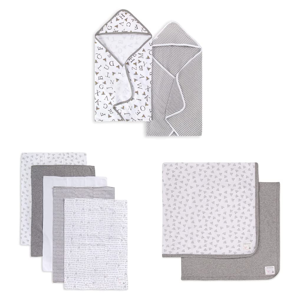 Burt's Bees Baby Organic Cotton Baby Care Essentials Bundle (2 Pack Hooded Towels + 2 Pack Blankets + 5 Pack Burp Cloths)