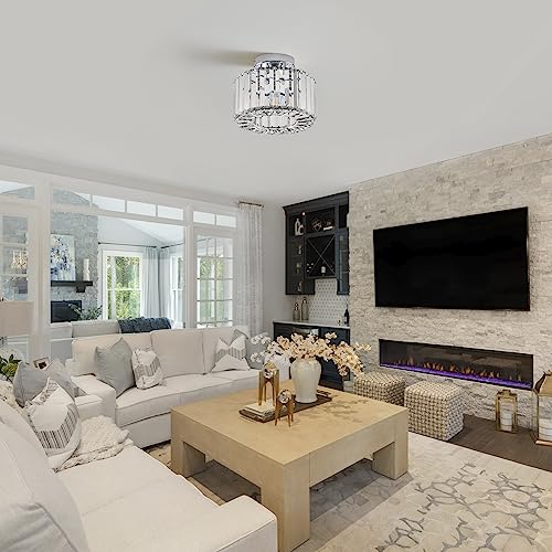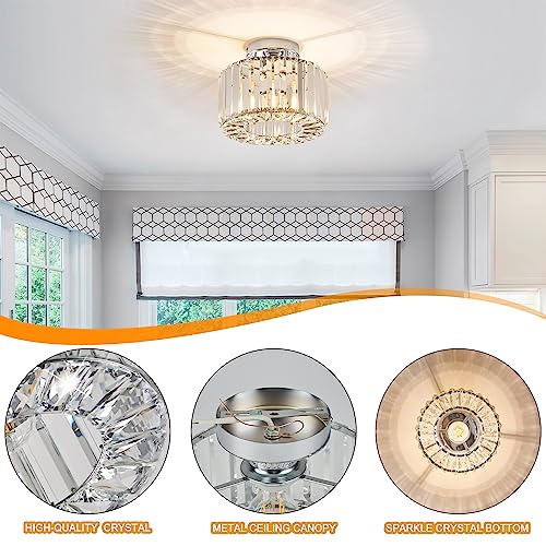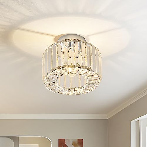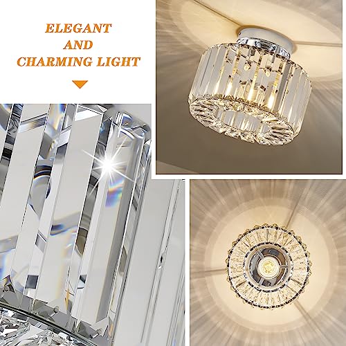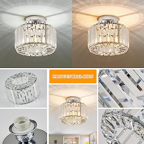 BUXVRCS Crystal Ceiling Light Fixture - Semi Flush Mount Ceiling Light Modern Chandelier Hallway Light Fixtures Ceiling Flush Mount Light Fixtures for Kitchen Bedroom Bathroom Entryway (Silver)