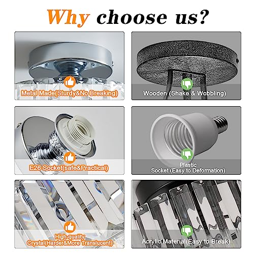 - 【Crystal Light Fixtures After-sales】The indoor ceiling light is not only excellent lighting fixture, but also an attractive decoration. If you have any quality issue after you receive the bathroom ceiling light, please check the installation manual first, also please feel free to contact us via Amazon message box, we will reply as soon as possible.
