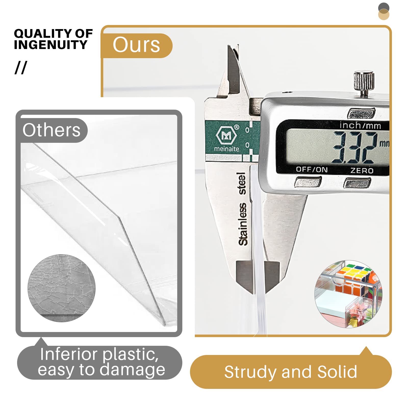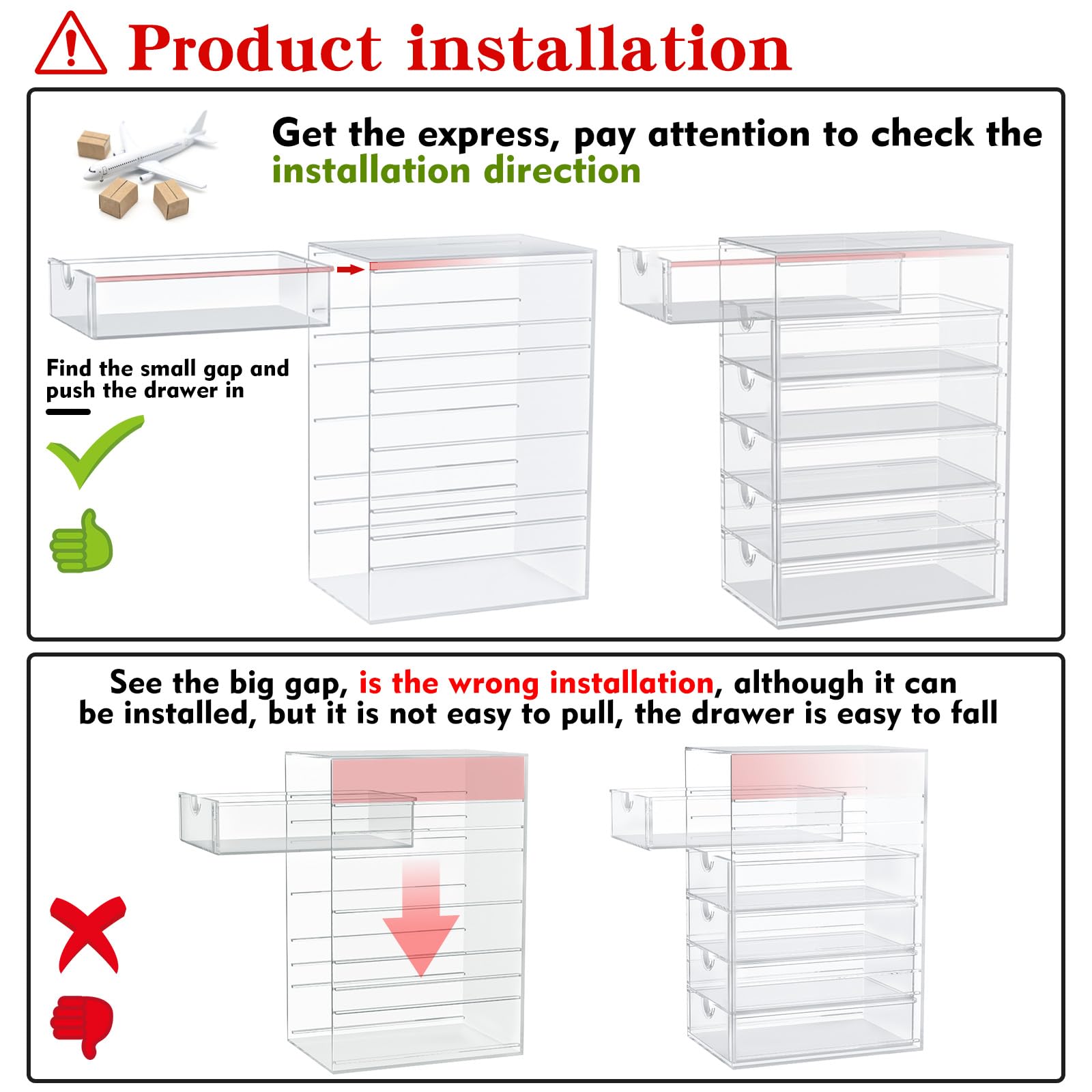 - High-quality Acrylic, Dustproof - This clear drawer storage is dust proof and waterproof, and can protect the items we put away from dust and water. In addition, the desk organizer is made from shatterproof plastic. The sturdy, transparent and fashionable design is compatible with decoration of any rooms. PLEASE DO NOT PUT IN DISHWASHER. Easily clean with soap and warm water.