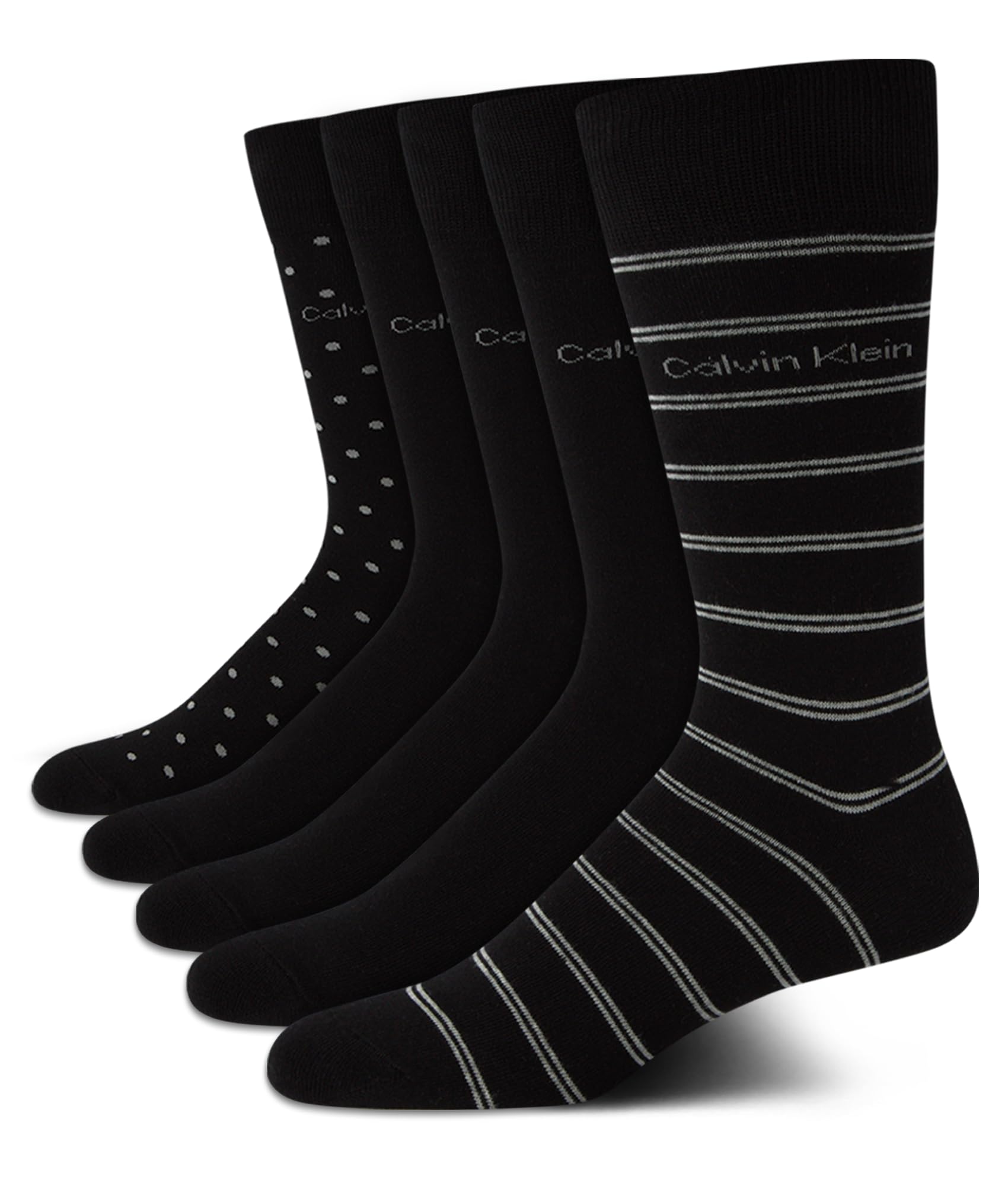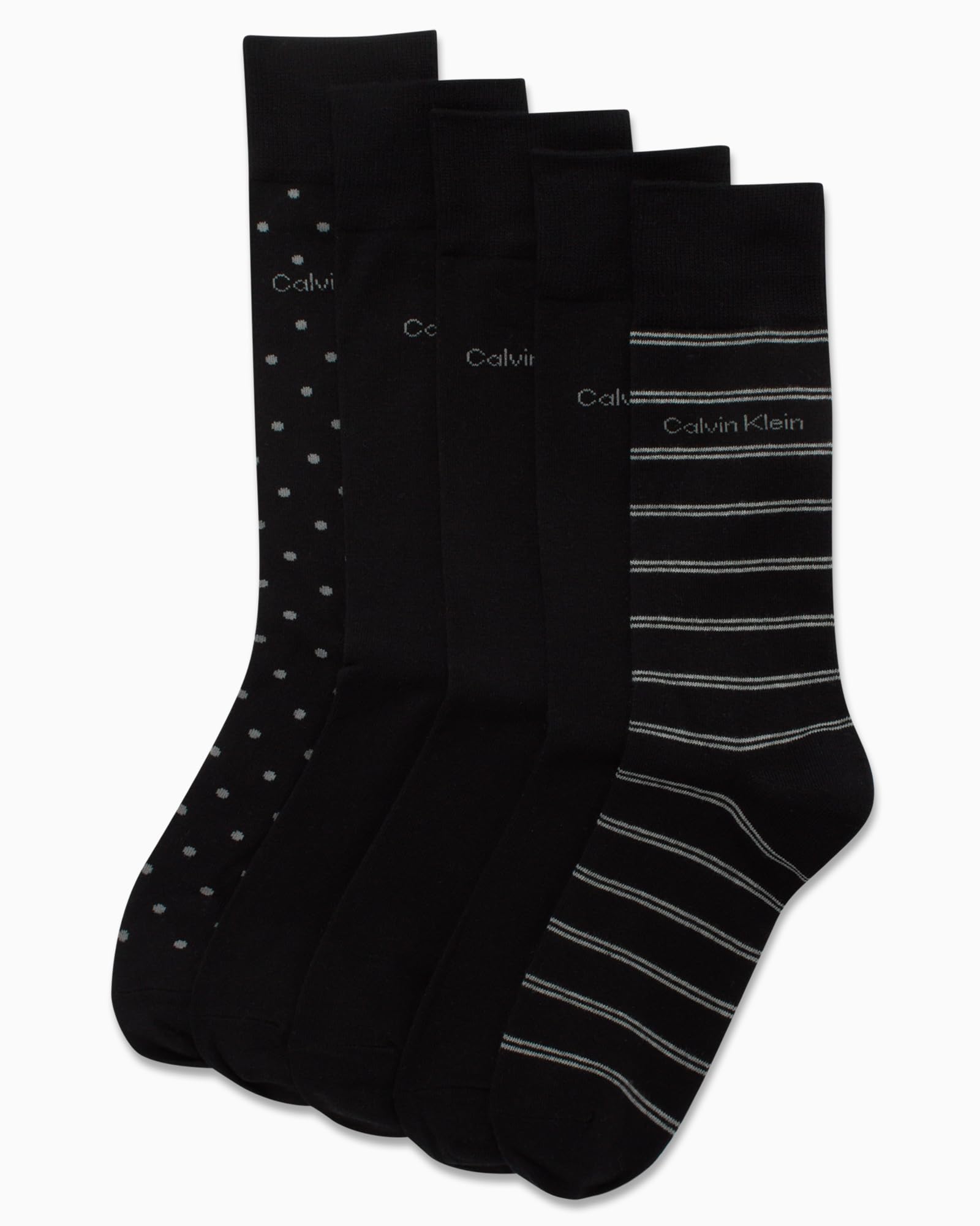 Calvin Klein Men's Dress Socks - 5 Pack Plain and Printed Crew Calf Compression Socks (7-12), Size 7-12, Black Stripe