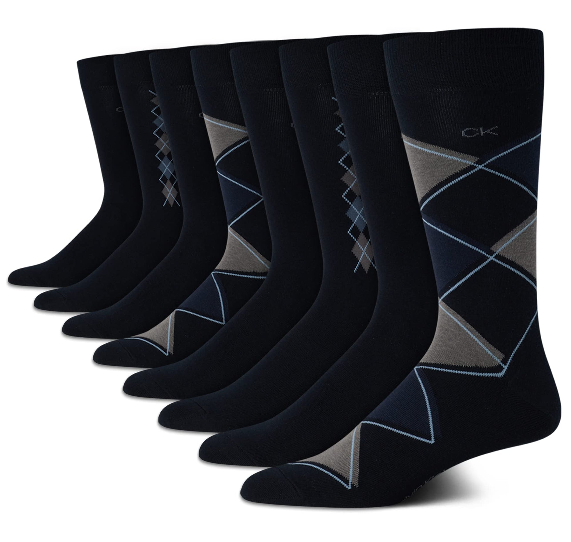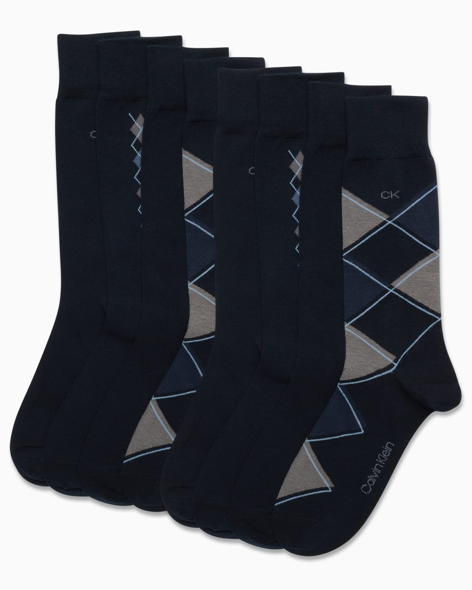 Calvin Klein Men's Dress Socks - Lightweight Cotton Blend Crew Socks (8 Pack), Size 7-12, Navy Argyle