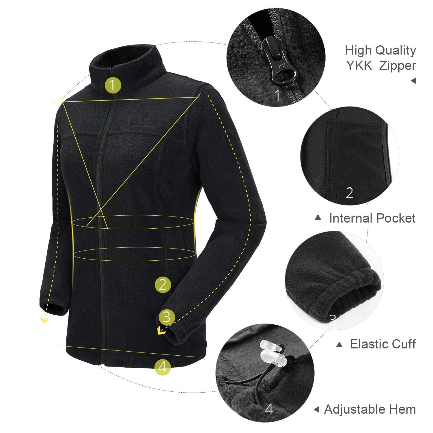 - ✔ MULTIFUNCTIONS --- women's fleece zip jacket can be a fleece coat in fall and spring or a warm layer with a waterproof shell as a ski jacket in winter, you can wear or take off it easily, and fold it in your bag. It is perfect for hiking, camping, jogging, cycling, sports, and outdoor activities or for daily wear.