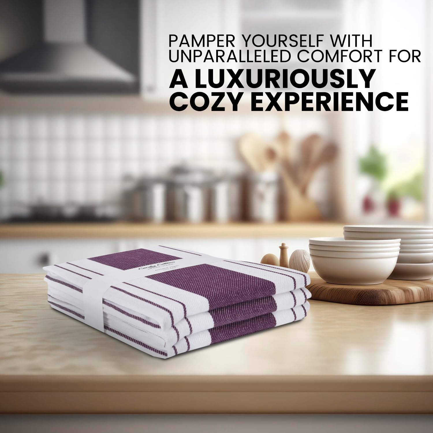 Candy Cottons Stripe Kitchen Towels Decor Mordern Design Centreband Tea Dish Towels Boho Stripe Absorbent Festive Gift Set of 3 Pantry Reusable Kitchen Dish Towel|Easter Spring Decor 18x28 Inch Purple