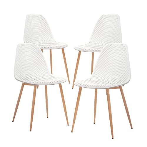 Details: Description CangLong Modern, Outdoor Indoor Shell PP Lounge Side w/Mesh Design, Metal Legs, Tulip Leisure, DSW Chairs for Kitchen, Dining Room, Patio, Set of 4, White