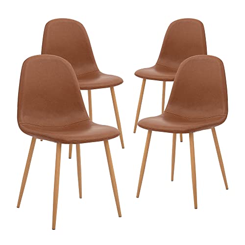 CangLong Washable PU Cushion Seat Back, Mid Century Metal Legs for Kitchen Dining Room Side Chair, Set of 4, Brown