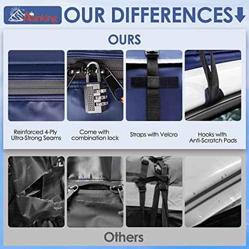 - 【ULTRA-DURABLE MATERIAL】 Our Asinking car roof cargo carrier bag is made of incredibly high-quality 840 PVC fabric. The water-repellent tarpaulin double coating increases water resistance and protects the luggage from dust. The thick and durable material provides maximum protection in extreme weather.