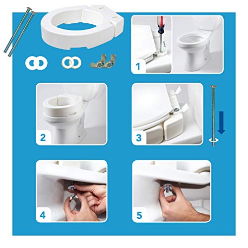 - INSTALLS EASILY. Installing easily between your round toilet bowl and existing toilet seat. The toilet seat riser is an easy choice for those with mobility issues, elderly, handicap, or disabled needing a raised toilet seat. Locking: No