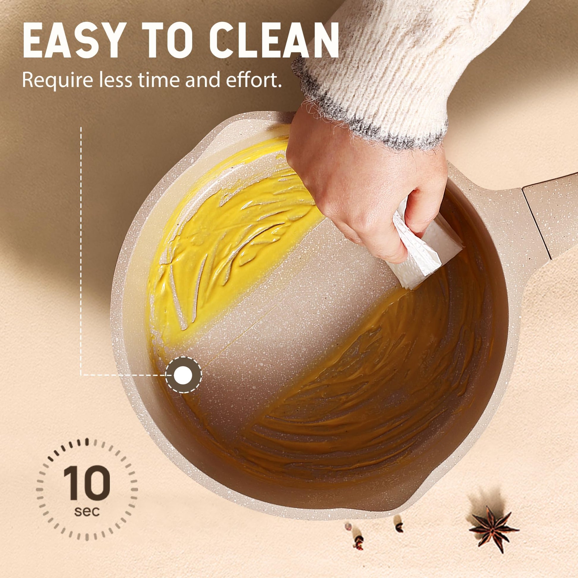 - FUSS-FREE CLEANING - Clean it just one wipe! Use Carote's pots and pans and enjoy effortless and easy cooking.