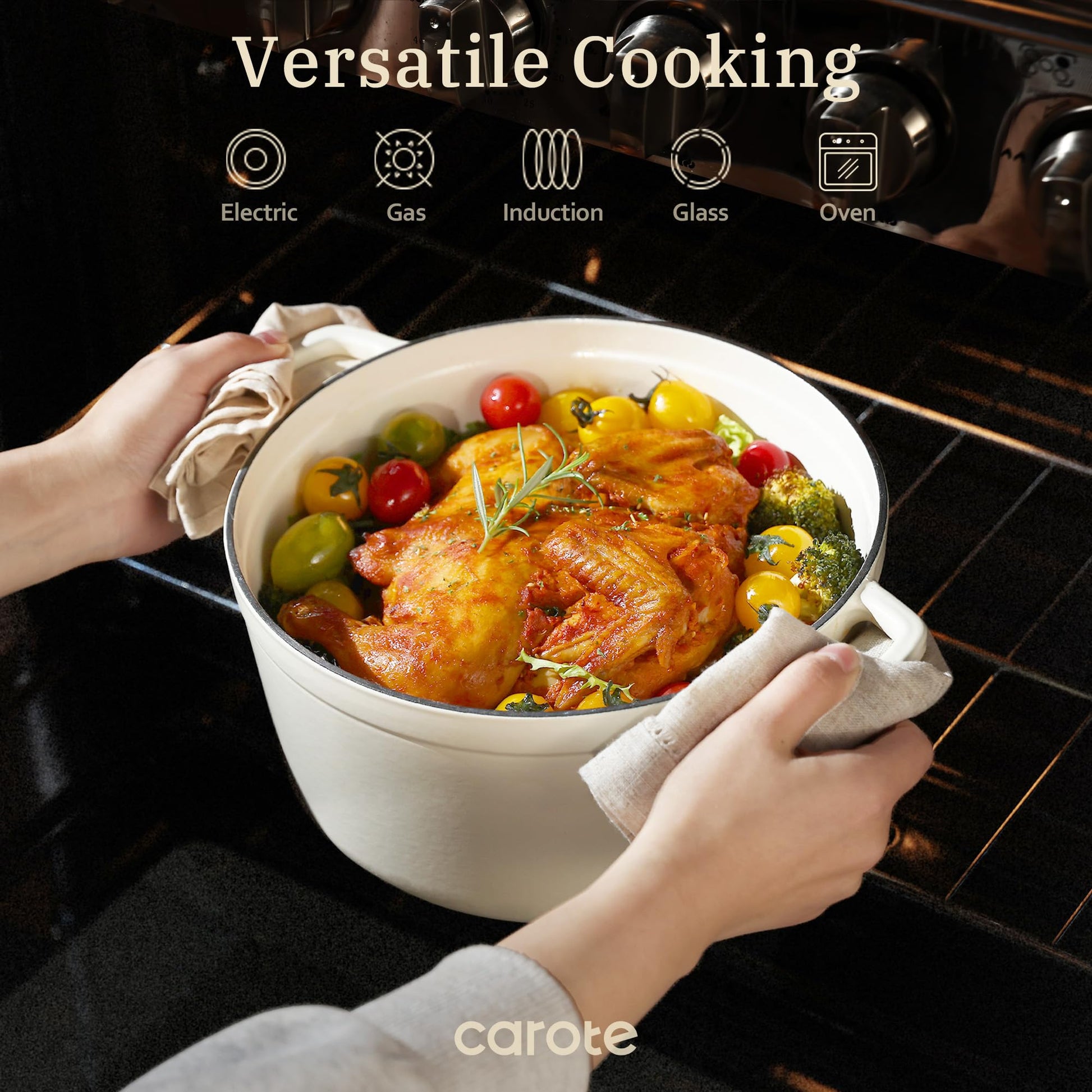 - Enhanced Cooking Experience: Carote enameled cast iron ensures excellent heat distribution and insulation, from stewing and boiling to roasting and frying, this single cookware does it all!