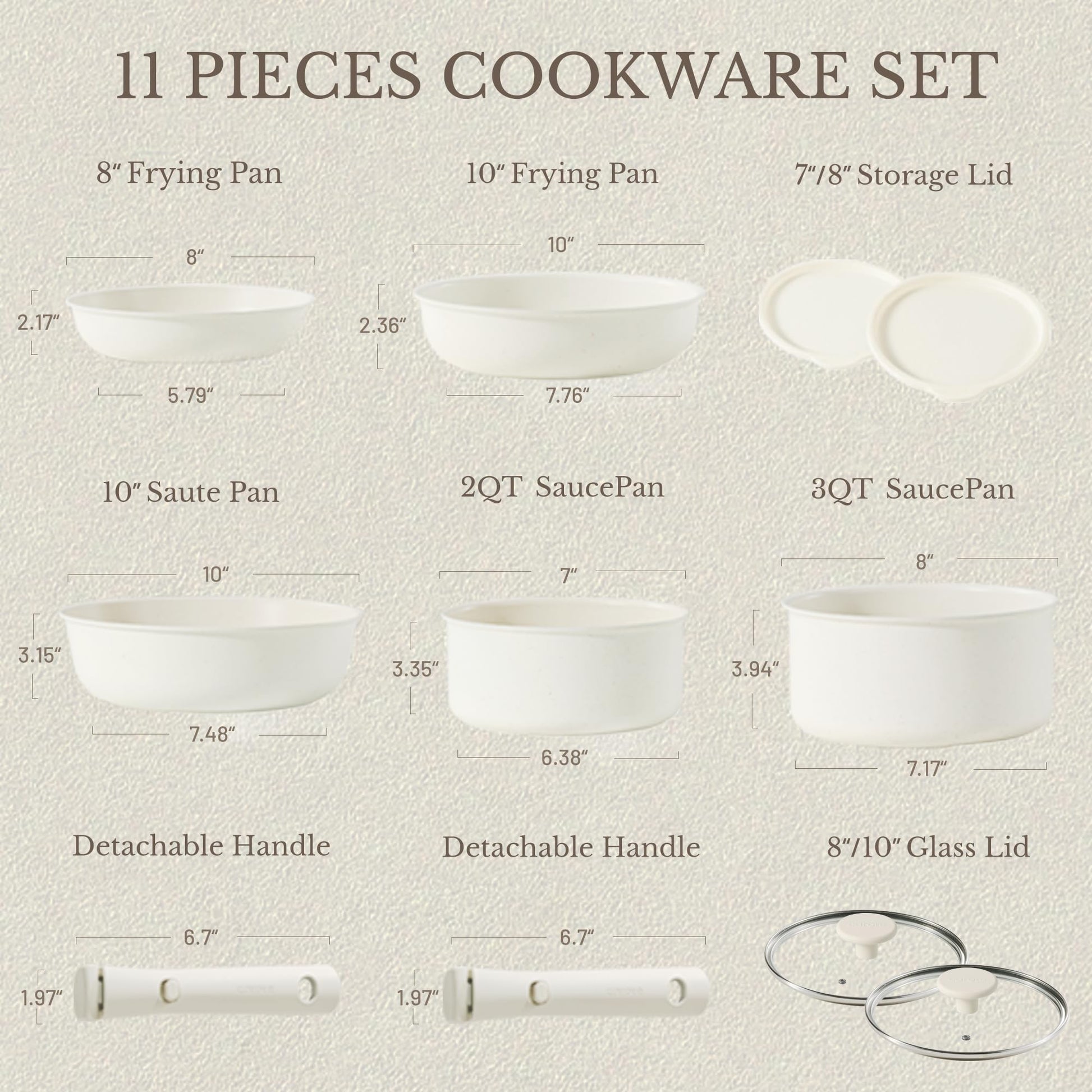 - · Multitaskig Cookware Set: Removable handle for the ultimate versatility– go from ALL kinds of stoves to the oven, to the grill, to the fridge, and onto the table in a click. The handle is upgraded for secure when attached during cooking.