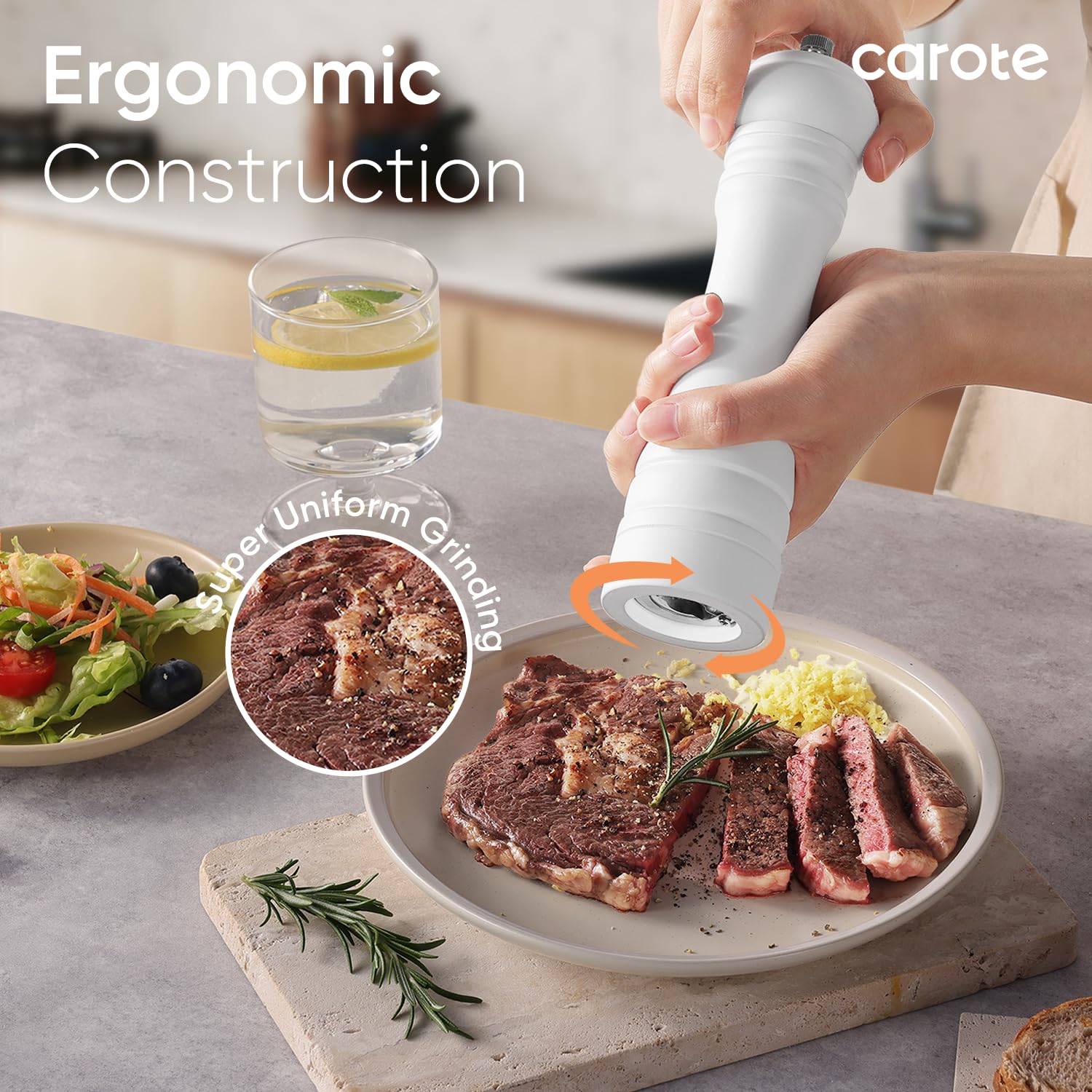 - Daily Elegance for Your Table: Featuring a sleek black-and-white minimalist design, CAROTE pepper mill combines modern style with practicality. It’s not just a kitchen gadget—it’s a stylish addition to your dining table, blending seamlessly with any decor while adding a touch of sophistication to your meals.