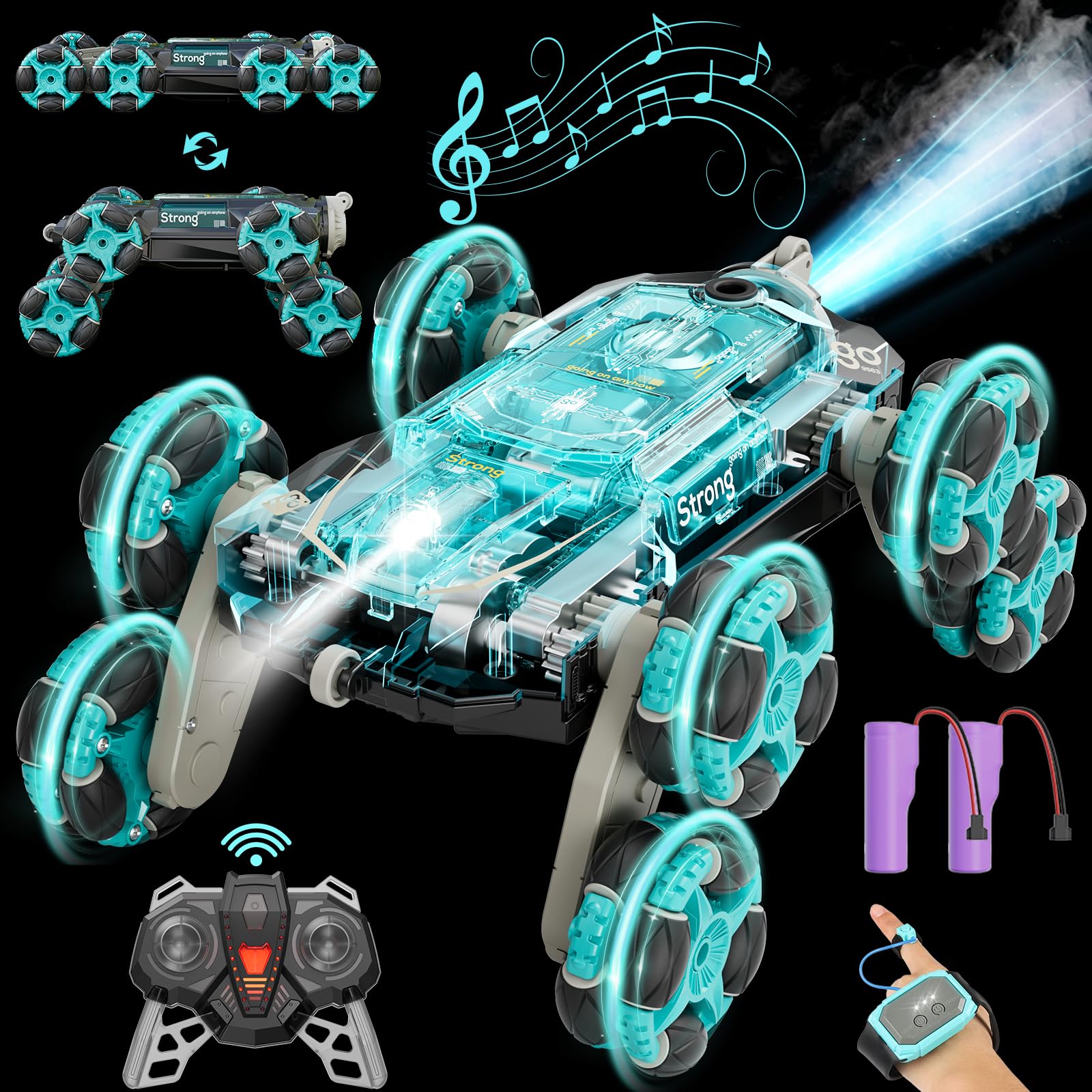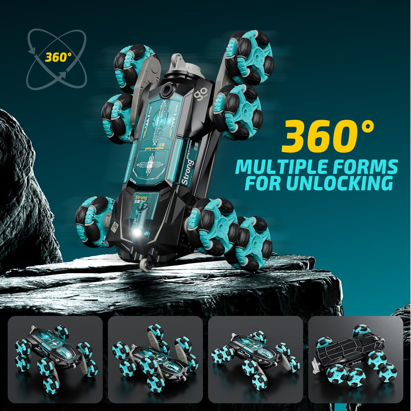 - Transform Feature:The RC stunt cars innovative design allows each pair of tire arms to be controlled separately, enabling them to rotate at different angles to maneuver around obstacles with ease. This RC cars will be great toys for ages 8-13