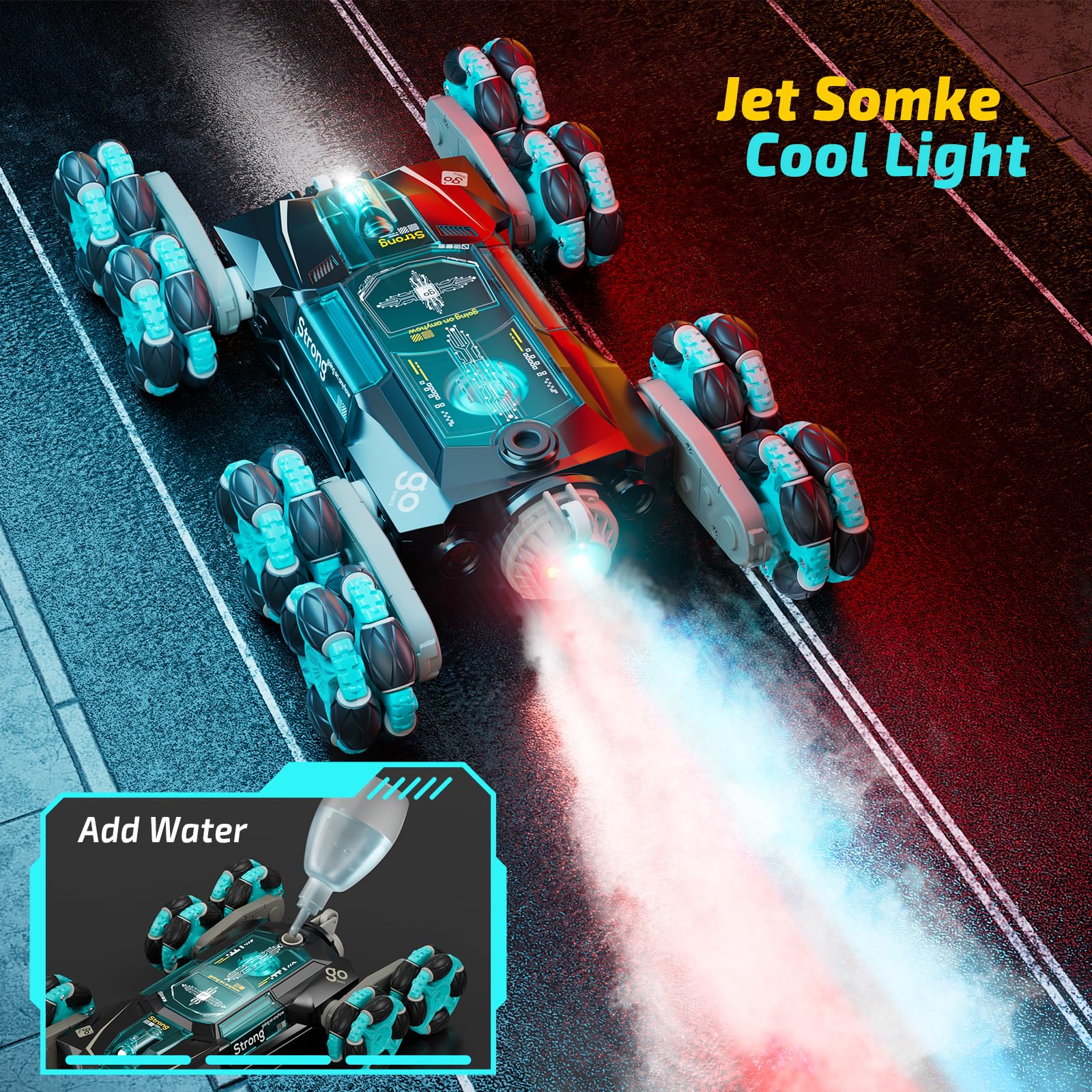 - Bring Excitement Playtime: Our remote control cars Equipped with special car exhaust jets, eye-catching lights, and realistic jet features that create a sci-fi feel. The music adds to the experience with authentic engine roars, acceleration, and brake sounds, mimicking a real car for an immersive driving experience that boy toys age 8-10 years old will love