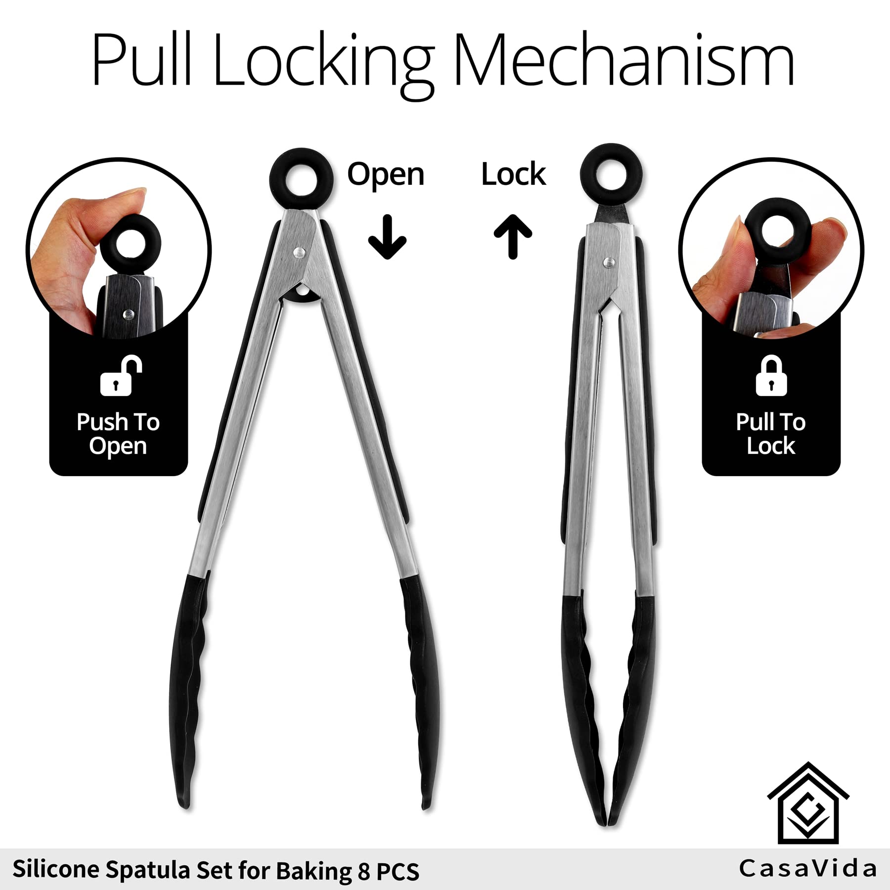 - ⭐ Versatile Kitchen Tool – CasaVida silicone spatulas set comes with 6 different varieties of spatulas, 1 Basting brush and 1 food tongs. Whether you're frosting cakes, mixing butters or flipping pancakes, you'll be covered. A comprehensive set of tools for your baking experience.