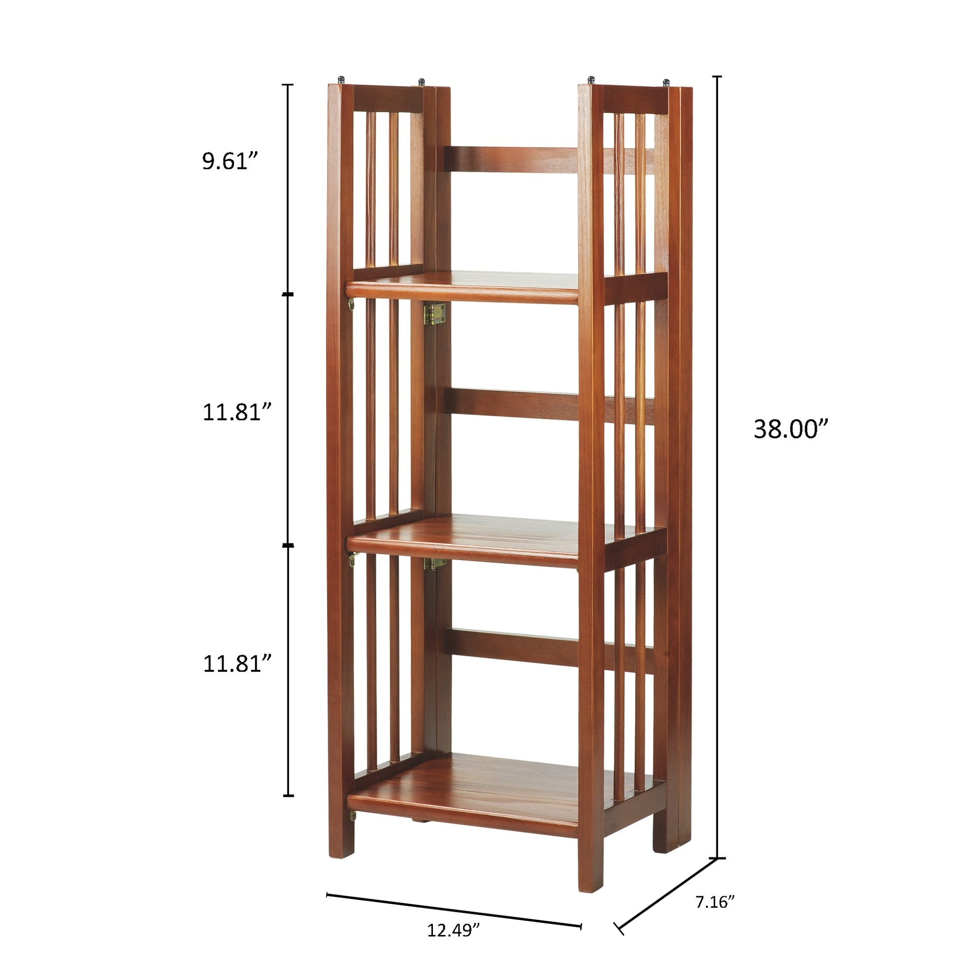 Details: Durable beauty, this Folding Bookcase features three shelves and solid wood construction for lasting use. Foldable design makes transportation and storage a breeze. Perfect for apartments, dorm rooms, and the home designers who love to keep things interesting.
