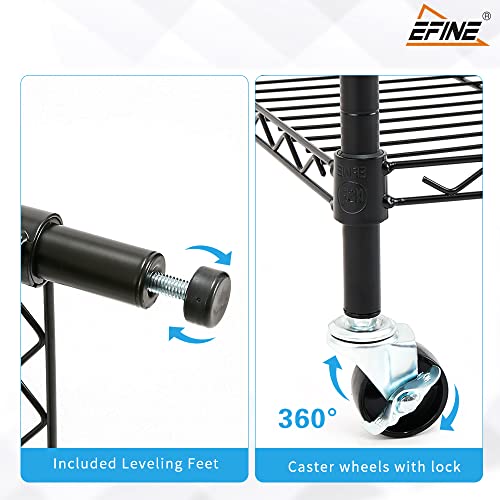 Details: Sporting a simple and sleek look, EFINE’s shelving unit delivers on convenience, durability, and versatility. The vertical storage space is a practical addition to any room, providing a compact and adjustable organization structure to store your belongings. Equipped with 3” wheels, seamlessly change the placement of your storage space in seconds.