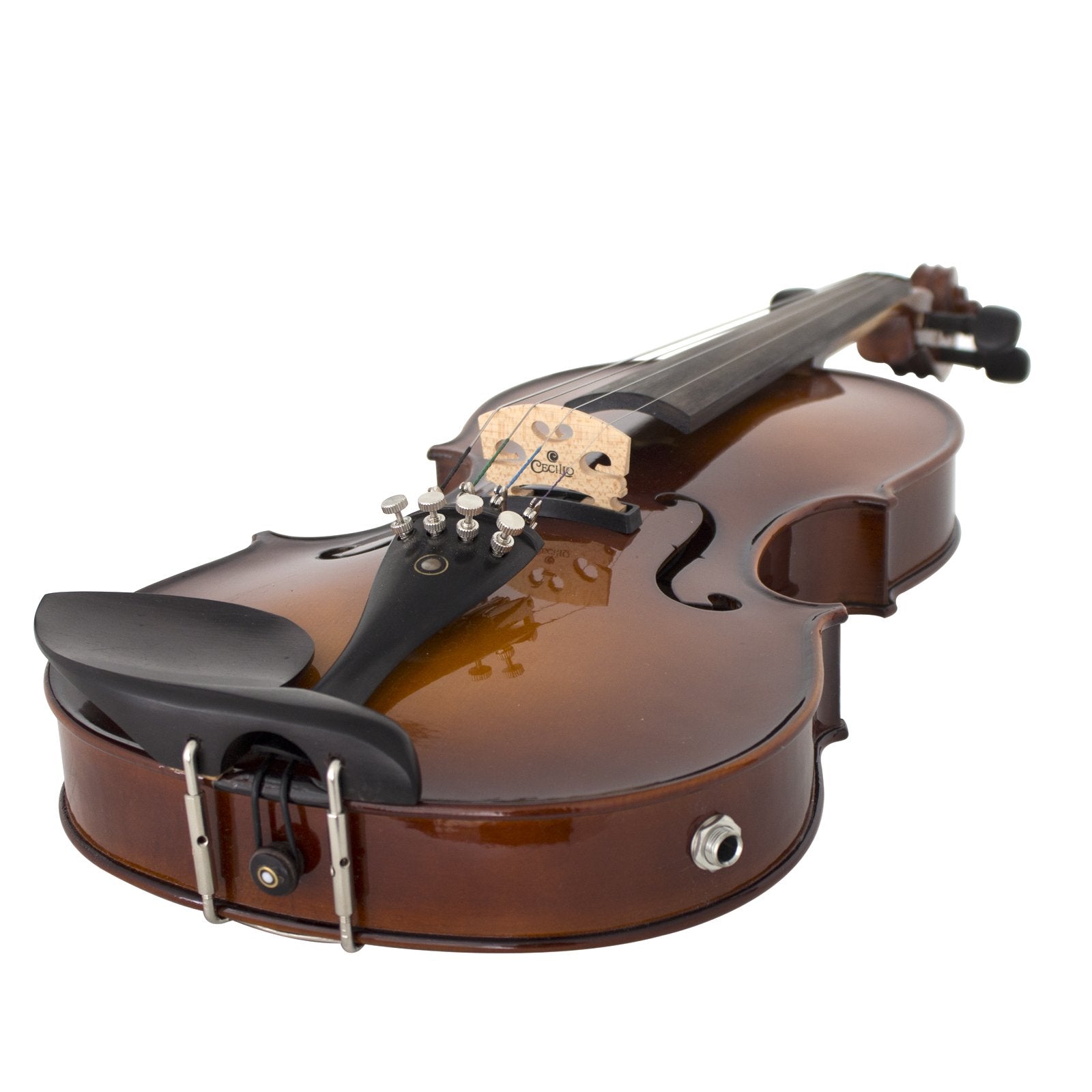 Details: Cecilio CVNAE acoustic/electric violins are perfect for beginner or student violinist. It features hand-carved solid spruce top, hand-carved maple back and sides. This violin is fitted with ebony fingerboard, pegs, chinrest, and tailpiece with nickel plated fine tuners. Violin package includes a lightweight form fitting hard shell case with pockets and strap (making it convenient to carry to school or orchestra), Brazil wood bow with unbleached genuine Mongolian horsehair, adjustable shoulder rest with soft foam padding & soft rubber feet, quality rosin cake, and a violin bridge.