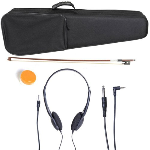 Details: Whether you're practicing, recording in studio or performing on stage, the Cecilio electric violin outfit offers excellent functionality and style. It provides violinists of all levels with the ability to practice confidently without disturbing others. The outfit features a 1/8" output jack that allows you to connect to most guitar amps or PA systems (1/4" to 1/8" cable included), volume control that allow you to choose the ambience you want, headphone jack for practice and a line-in jack for practice with a background track. This violin package includes a well-padded lightweight hard case, a bow, rosin, bridge, pickup, aux cable, and headphones. Great for Student, Intermediate and Professional Violinist.