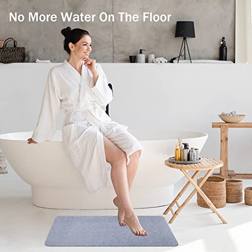 CECOKESO The Grey Diatomaceous Earth Bath Mat is Non-Slip, Absorbent, Its Dimensions are 23.62" x 15.35"