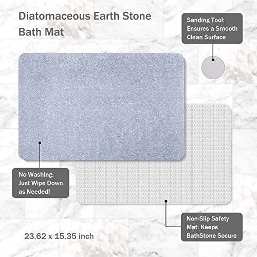 - 🍃SAY GOODBYE TO WET AND SLIPPERY FLOORS Anti-slip diatomaceous earth And say hello to clean, dry floors! Stone Bath Mat has a quick-drying and cooling surface.