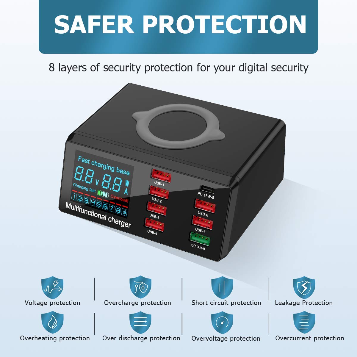 - 💎INTELLIGENT CHARGING TECHNOLOGY: Charging station for multiple devices core thickening is adopted, Equipped with advanced charging technology, each port adjusts the power output to ensure efficient and safe charging for your devices, without the risk of overloading or overheating