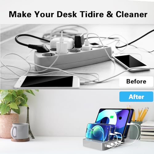 Charging Station for Multiple Devices,PD 20W Fast Charging for lPhone 14/13/12,Multi Charger Station with 4 Charging Cables, Compatible with Cellphone iPad Tablet and Others