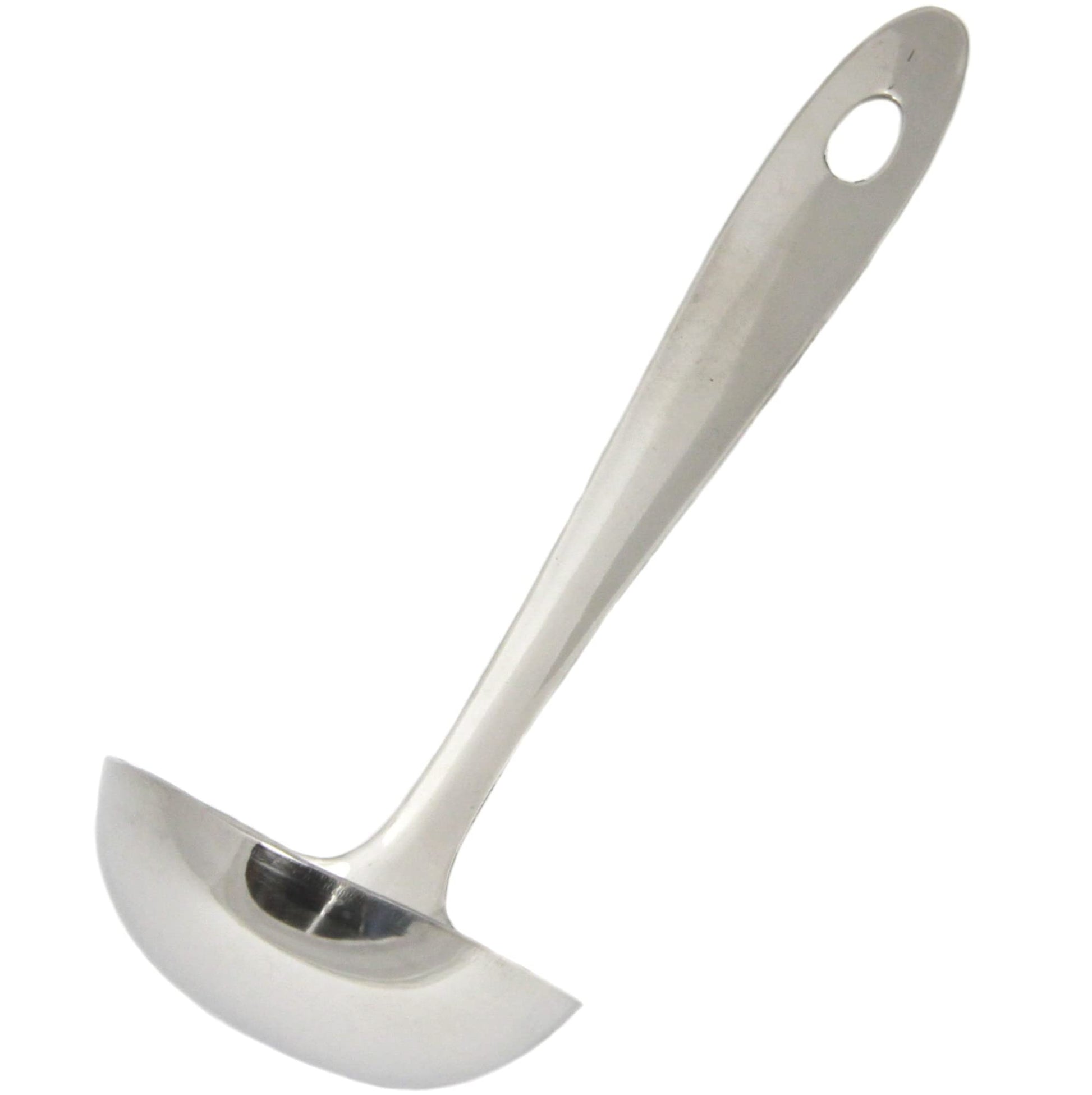 Details: The Chef Craft Stainless Steel Serving Ladle is great for use for family-style dinners and buffets. It is great to serve small portions of soup or gravy. It is also good to use for plating sauces. This smaller-sized ladle is great for controlling portions when serving a variety of foods.The sleek mirror finish provides a classic look that is picturesque in any style kitchen. Dishwasher safe for an easy and efficient clean up.