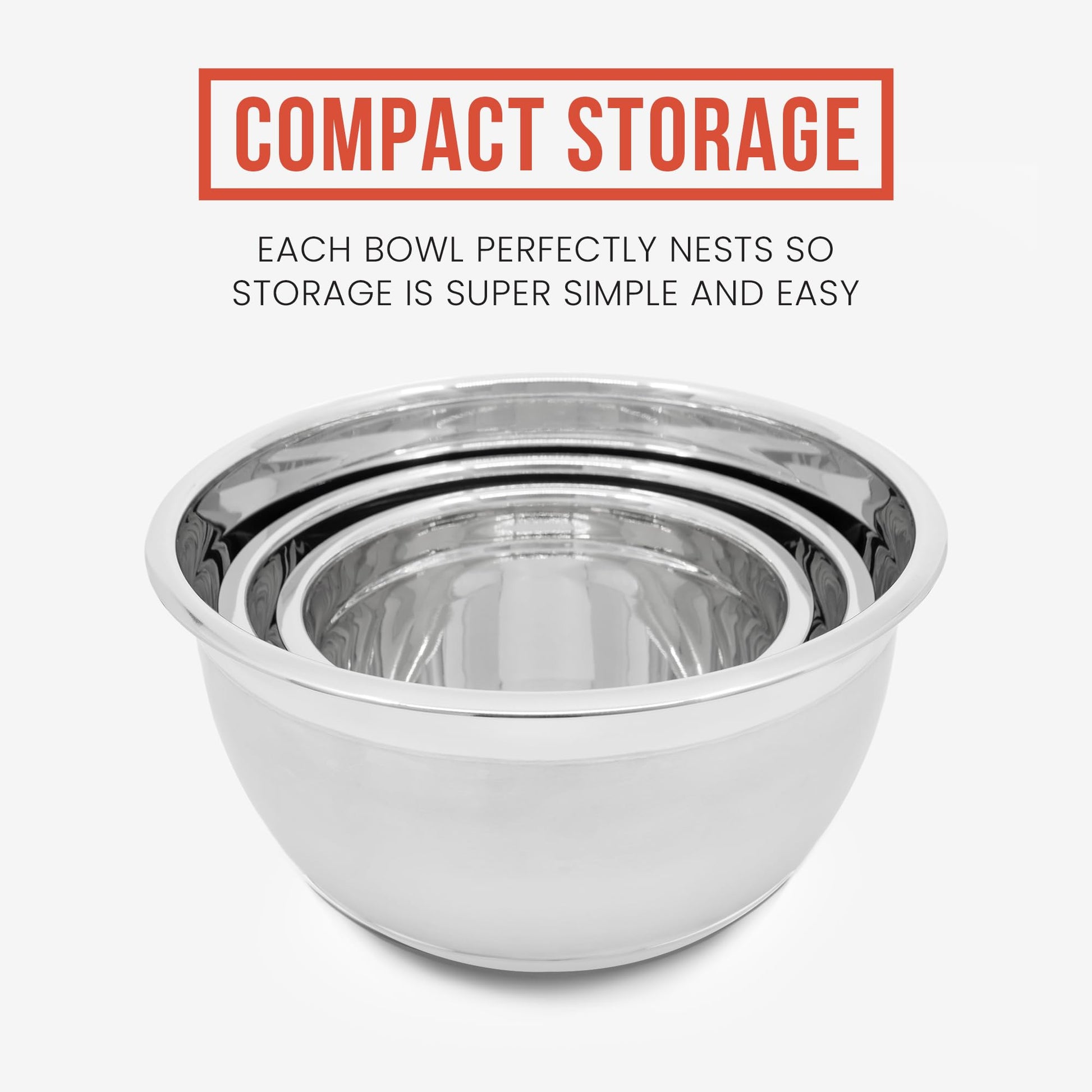 - ✅ MORE FUNCTION IN LESS SPACE. All-purpose cooking and baking mixing bowls are sized to handle your everyday kitchen needs. When not in use, bowls cozily nest for quick and easy grab-and-go storage.
