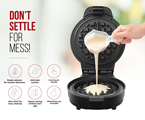 Chefman Anti-Overflow Belgian Waffle Maker w/Shade Selector, Temperature Control, Mess Free Moat, Round Iron w/Nonstick Plates & Cool Touch Handle, Measuring Cup Included, Black