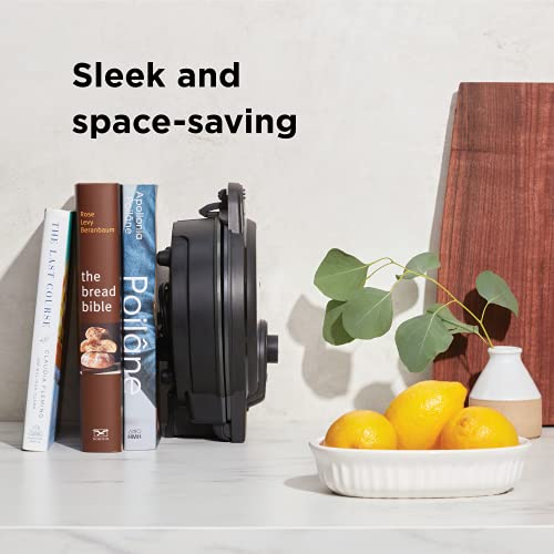 - EASY CLEANING & STORAGE: Extra-strong non-stick coating for easy cleaning; gently wipe down the exterior and interior plates with a damp cloth. Can be stored in vertical position for easy space-saving storage.