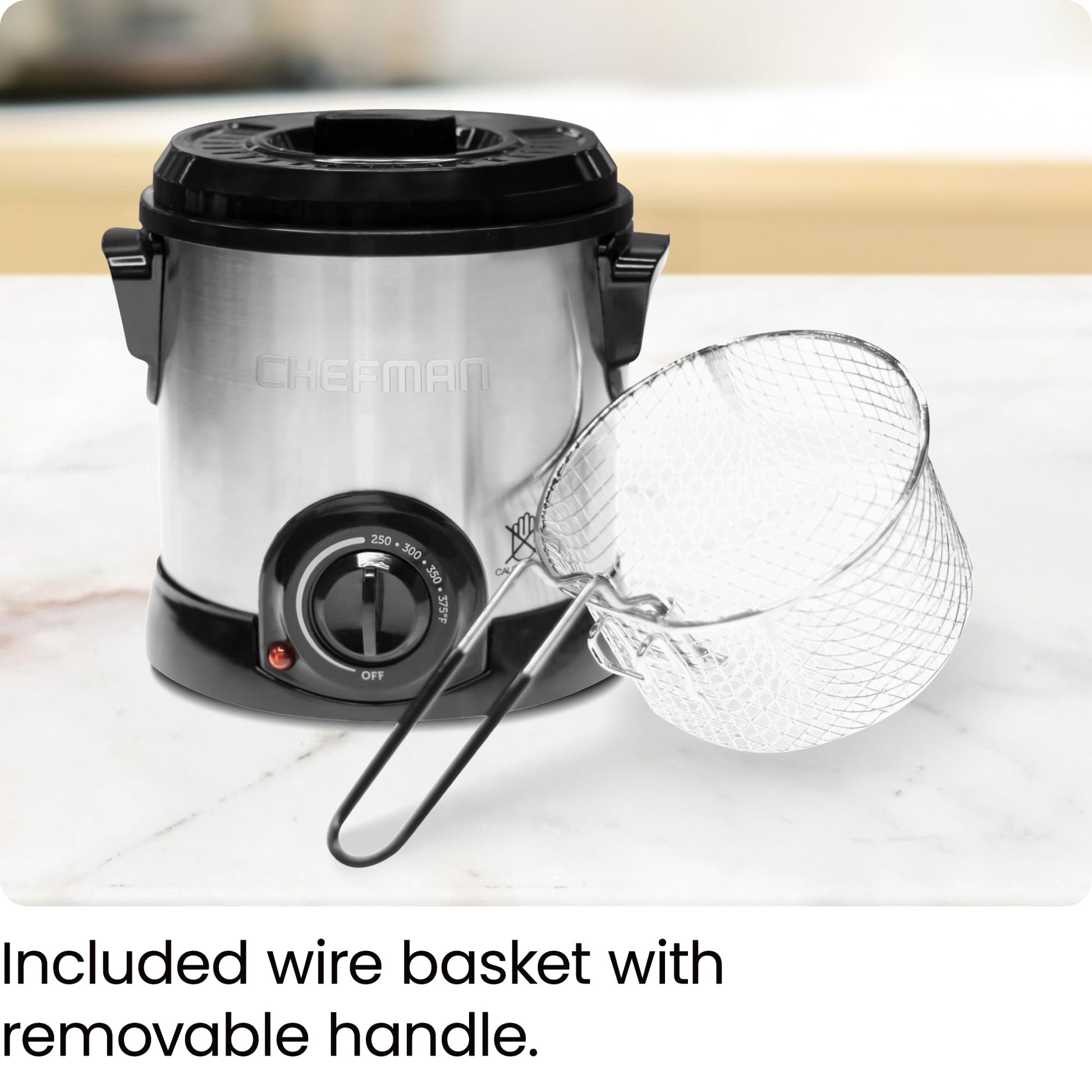 Chefman Fry Guy Deep Fryer with Removable Basket, Easy-to-Clean Non-Stick Coating and Cool-to-Touch Exterior, Adjustable Temperature Control, 4.2 Cup/ 1 Liter Capacity, Stainless Steel
