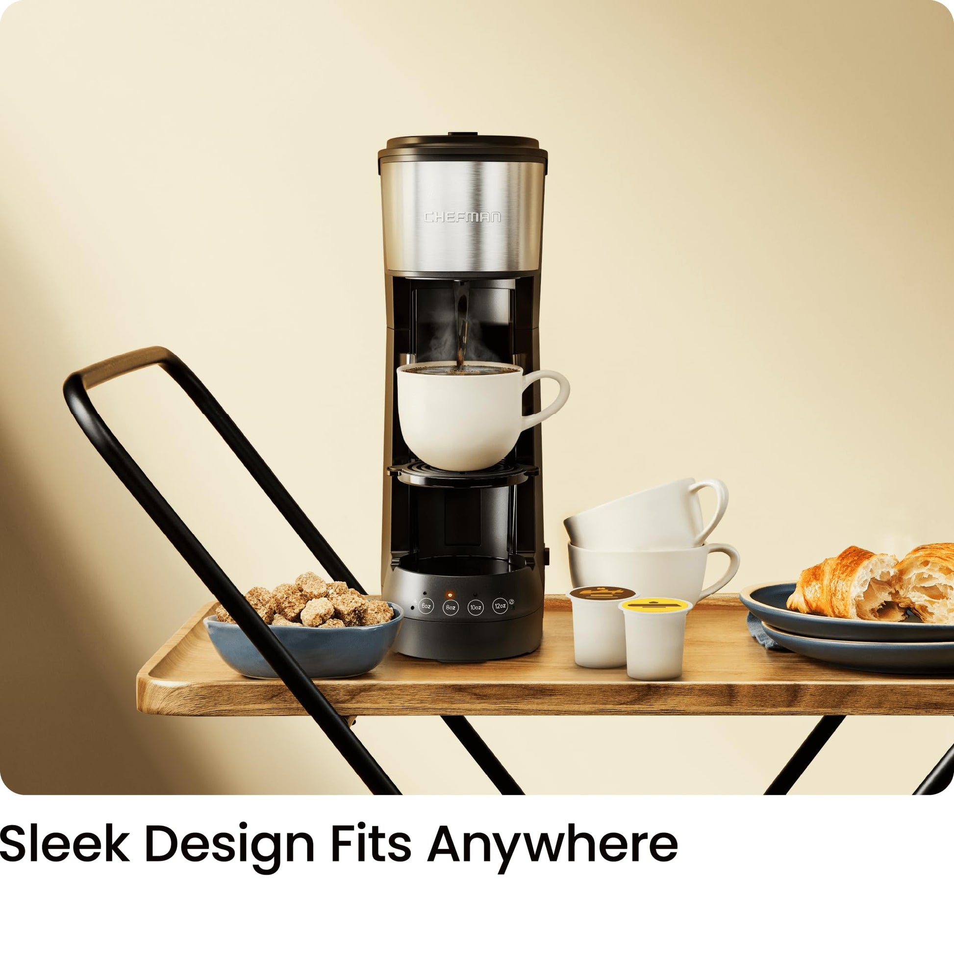 Chefman INSTACOFFEE MAX+ Pod & Coffee Ground Brewer with Lift & Water Reservoir-LR, 14 Ounces, Black