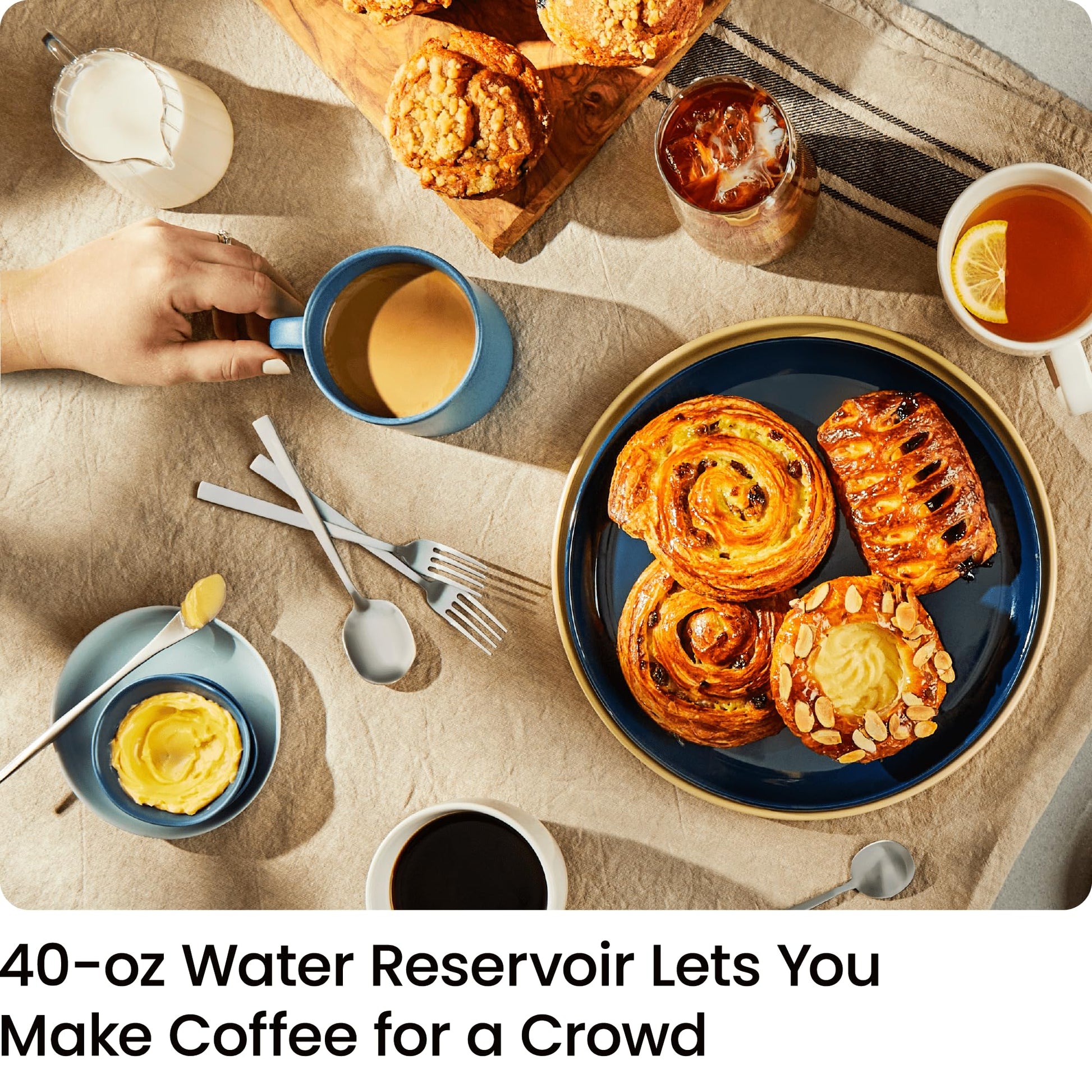 - LARGE WATER RESERVOIR: The machine features a 40oz water reservoir, reducing the need for frequent refills and allowing for multiple cups of coffee to be brewed in one go.
