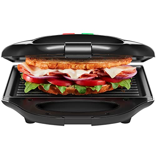 - PERFECTLY SIZED: This compact, portable electric grill and sandwich press takes up minimal space on your counter while providing enough grill area to cook for 2 people.