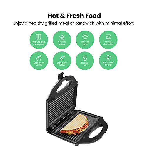 - HASSLE-FREE MEALS: Easily cook up a burger, breakfast, veggies, sandwiches, or grilled cheese in no time on our indoor grill and sandwich press.