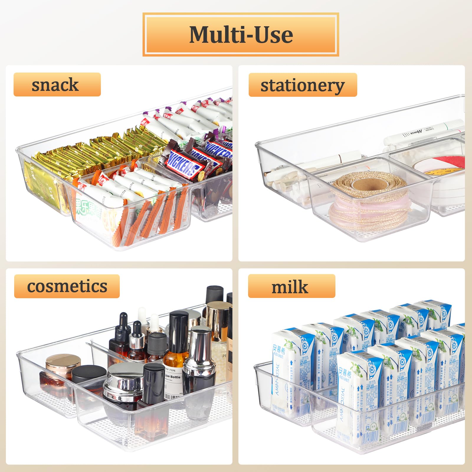 CherHome Drawer Organizer,2PCS Clear Organization and Storage Set,Desk Drawer Organizer Food Snack Organizer,Plastic Organizer Bins for Kitchen Drawer,Bathroom,Makeup and Office(13 X 8.9 X 2.3in)