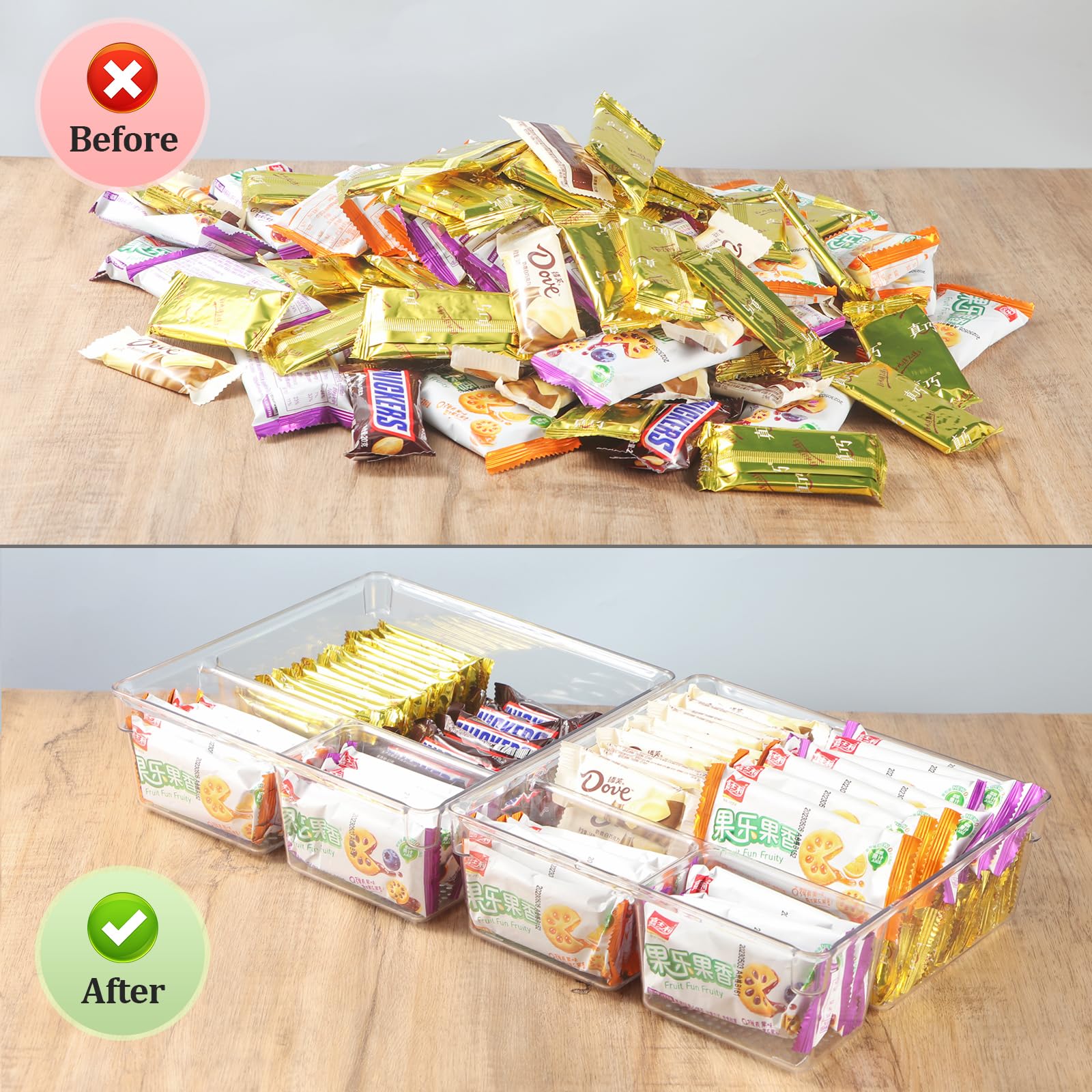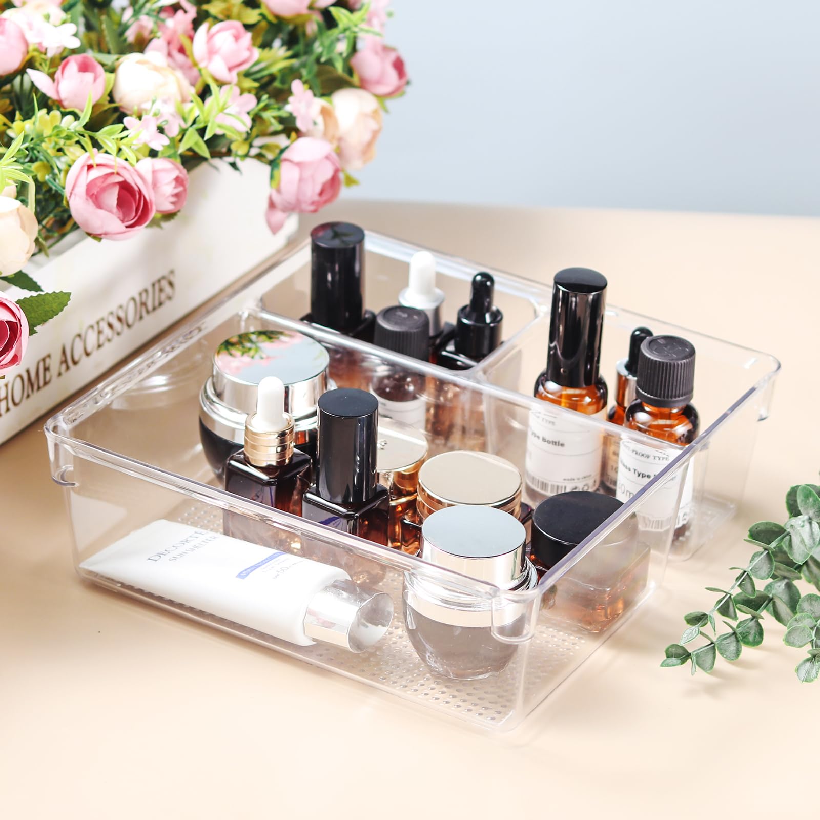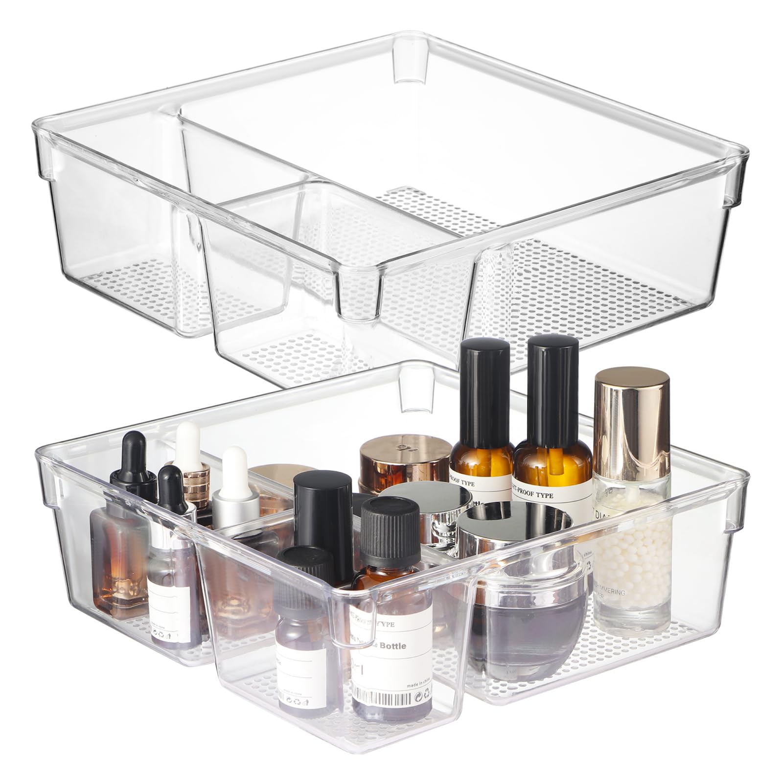 CherHome Drawer Organizer,2PCS Clear Organization and Storage Set,Desk Drawer Organizer Food Snack Organizers,Plastic Organizer Bins for Kitchen Drawer,Pantry,Bathroom,Makeup and Office(9 X 9 X 3in)