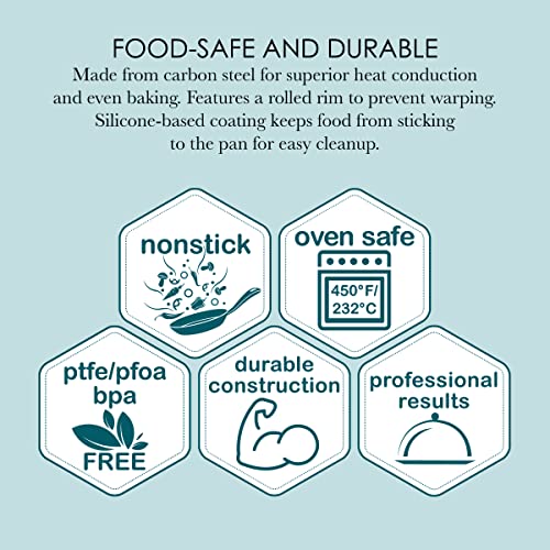 - CONSISTENT HEAT DISTRIBUTION: Each piece is made from heavy weight carbon steel to evenly disperse weight and heat for consistent baking results. Suitable for all oven types