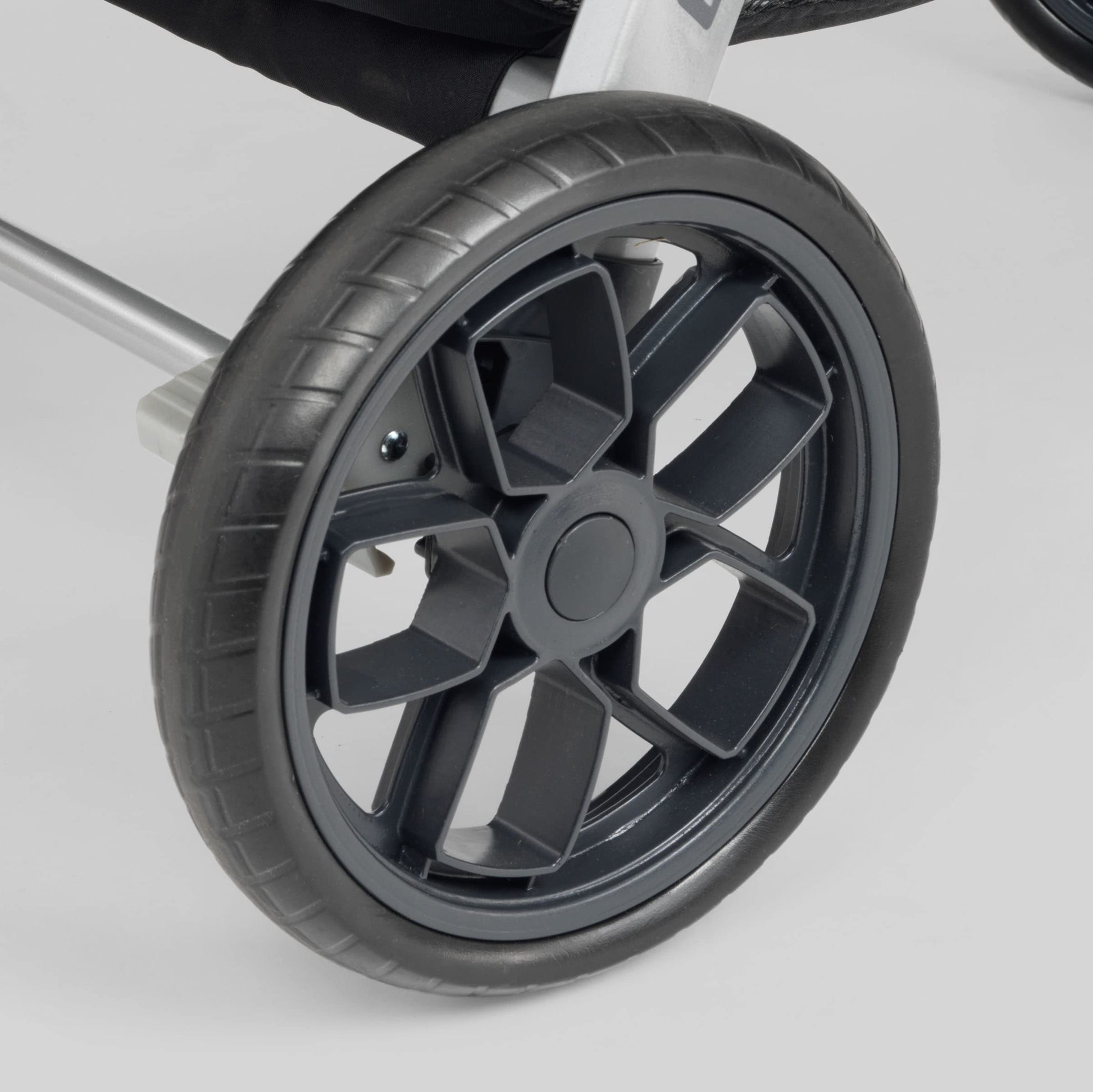 - EASY TO USE | EASY TO STORE – With a compact, one-hand, smart fold design, the stroller stands independently without the push handle touching the ground. Large wheels with treaded tires and all-wheel suspension help navigate uneven terrain