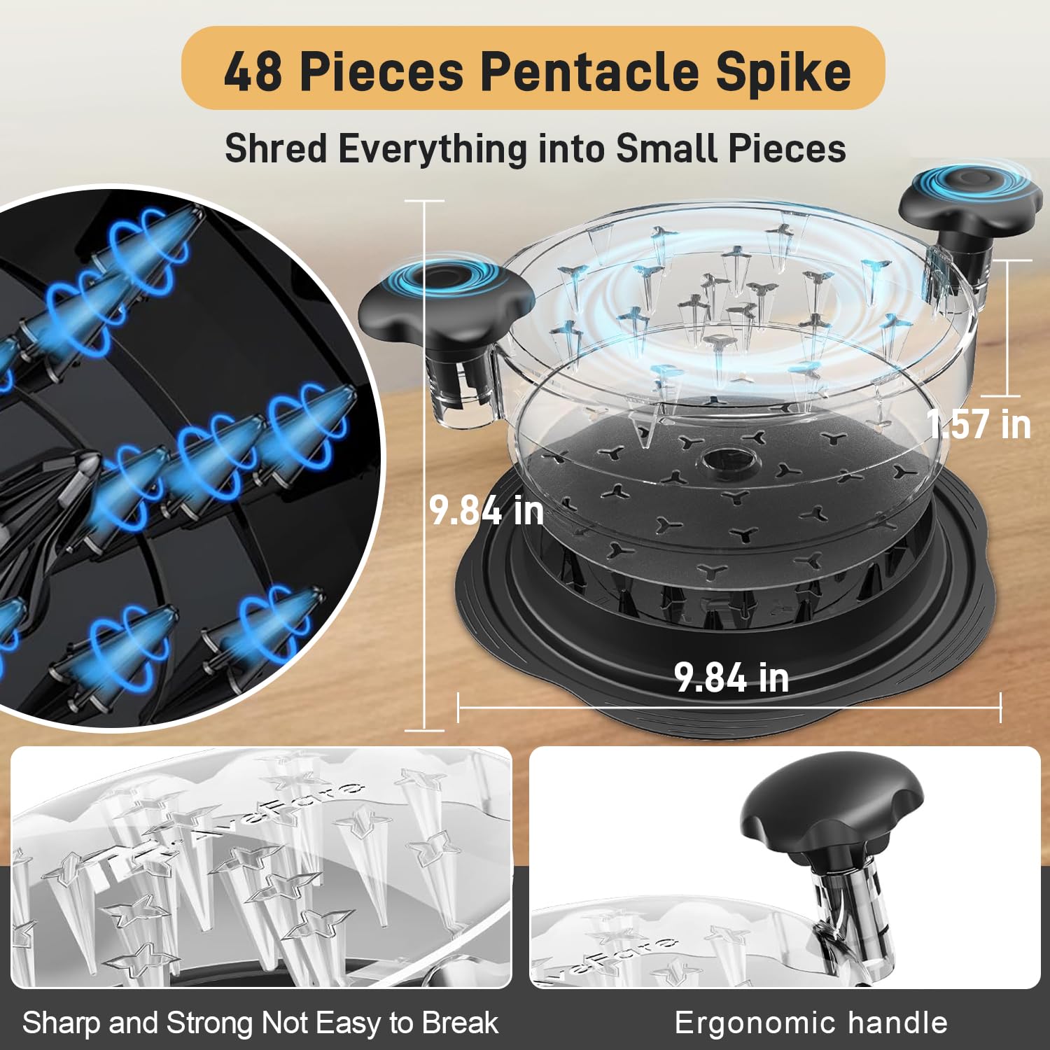 - 48 Pieces Pentacle Spike: We've improved the inner shredding structure and added a strong anti-slip strip, making it more effective and time-saving. No more worries about it slipping off your kitchen counter. The package includes a cleaning brush, making it easy to wash by hand or in the dishwasher.