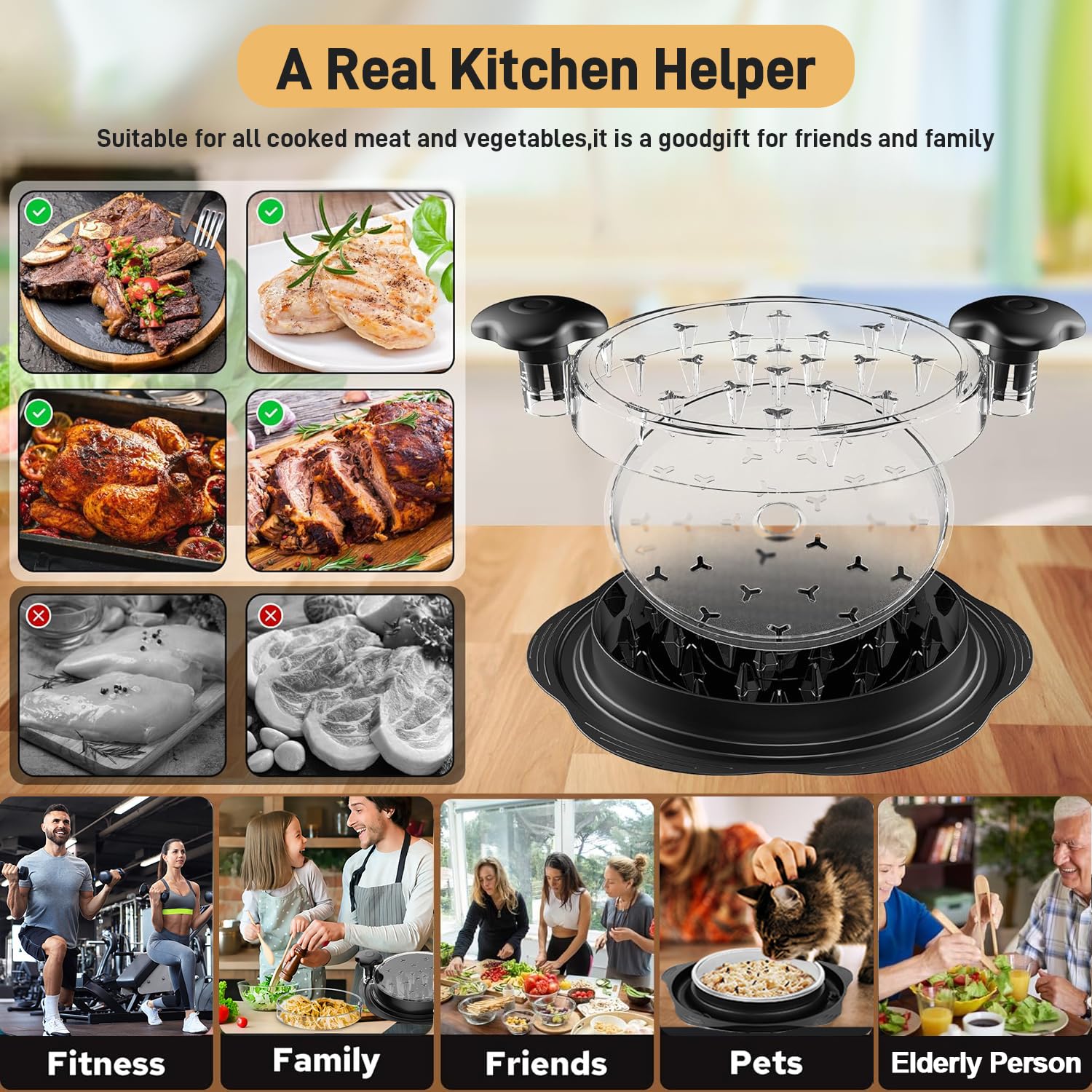 - Time-Saving Game Changer:Meat shredder features built-in plastic teeth that cover the entire area, securely gripping. The extra spikes on the lid help gather the shredded meat in the center for even cutting. With an ergonomic handle and anti-slip base, the tool ensures comfortable and easy operation, even during heavy use.